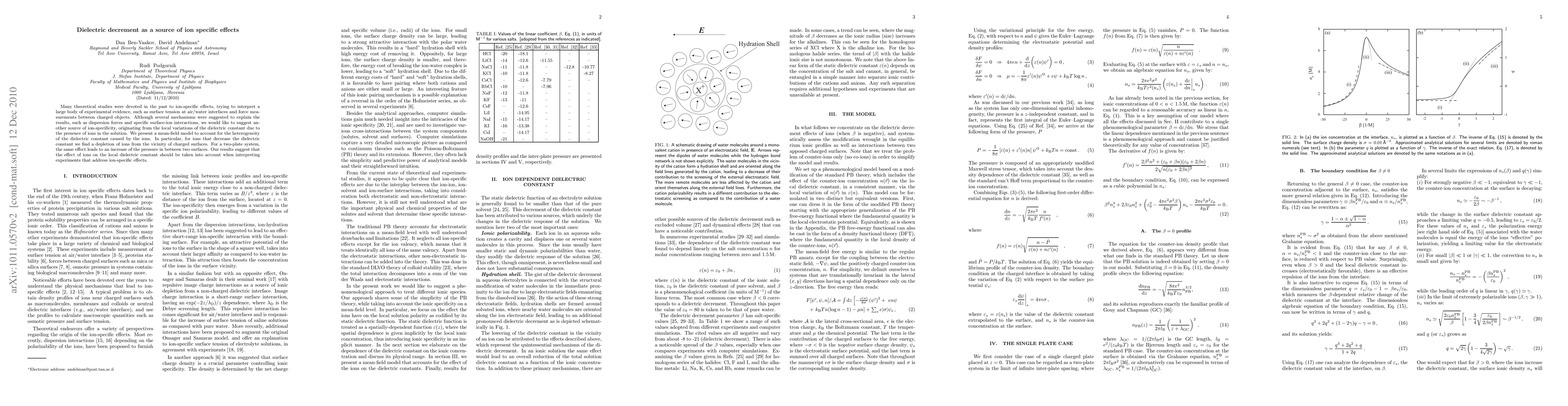 This paper proposes a new mechanism for ion-specific effects based on the dielectric decrement caused by ions, suggesting a mean-field model to account for local dielectric variations. The model predicts ion depletion near charged surfaces and increased pressure between two plates due to these variations.