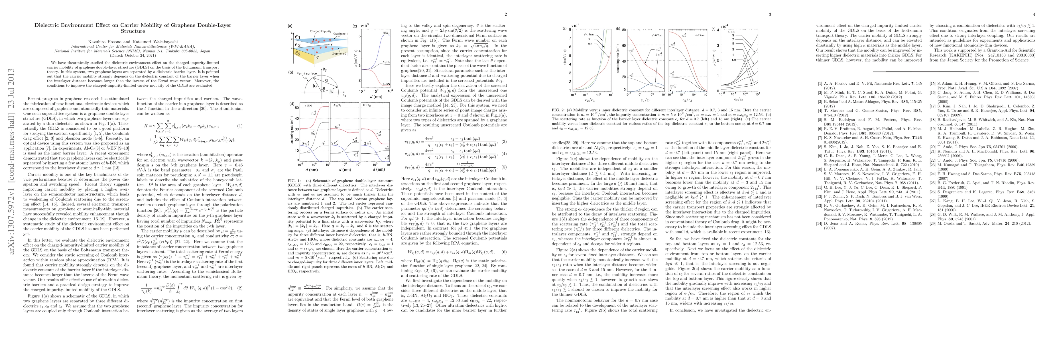 This paper theoretically investigates how the dielectric environment affects carrier mobility in a graphene double-layer structure using Boltzmann transport theory. It finds that carrier mobility is significantly influenced by the dielectric constant when the interlayer distance exceeds the inverse of the Fermi wave vector, and evaluates conditions to enhance mobility.