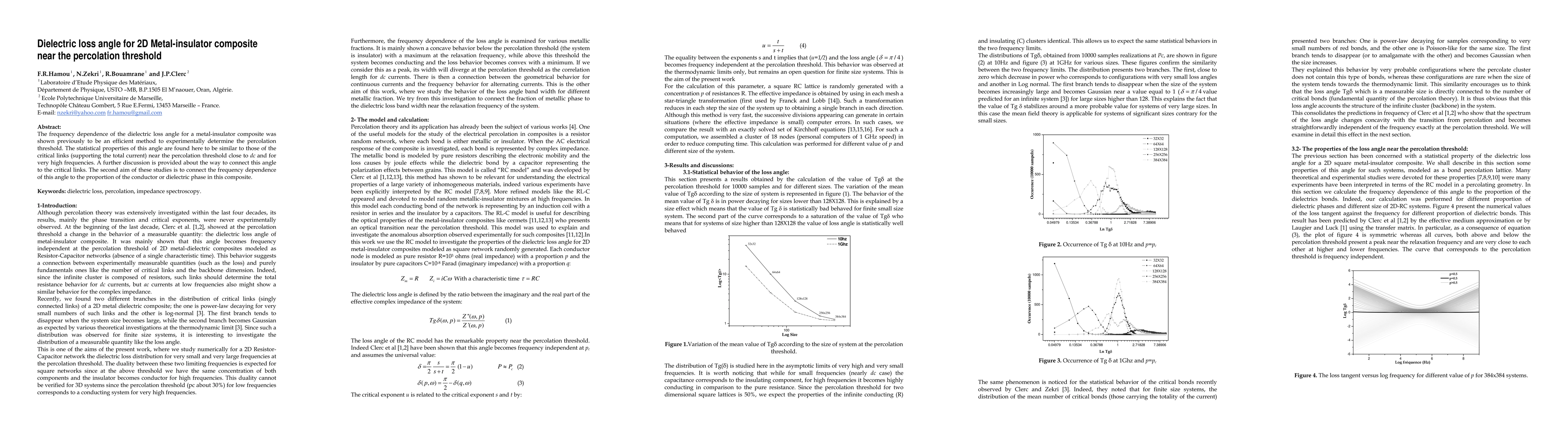 The frequency dependence of the dielectric loss angle for a metal-insulator composite was shown previously to be an efficient method to experimentally determine the percolation threshold. The statistical properties of this angle are found here to be similar to those of the critical links (supporting the total current) near the percolation threshold close to dc and for very high frequencies. A further discussion is provided about the way to connect this angle to the critical links. The second aim of these studies is to connect the frequency dependence of this angle to the proportion of the conductor or dielectric phase in this composite.