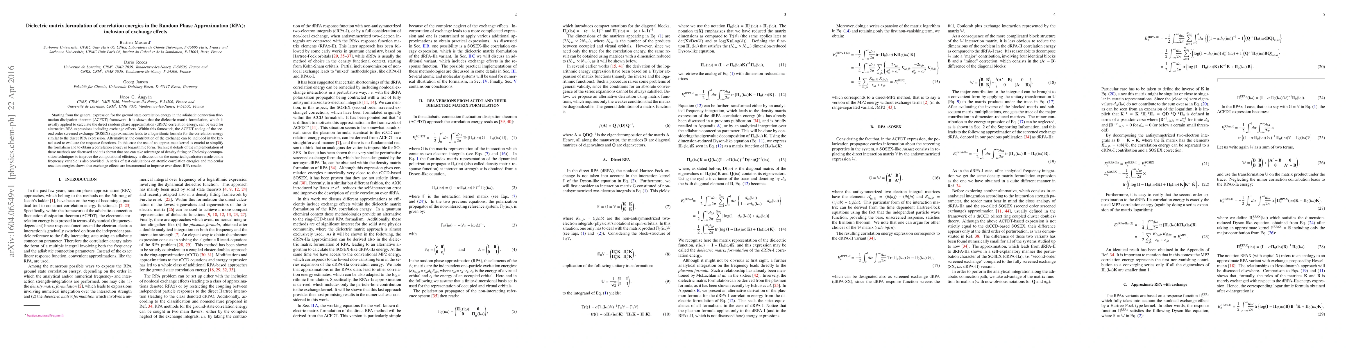 The main novelty lies in demonstrating that exchange effects can be conveniently included in the dielectric matrix formulation of RPA correlation energies, leading to improved accuracy over standard RPA methods.