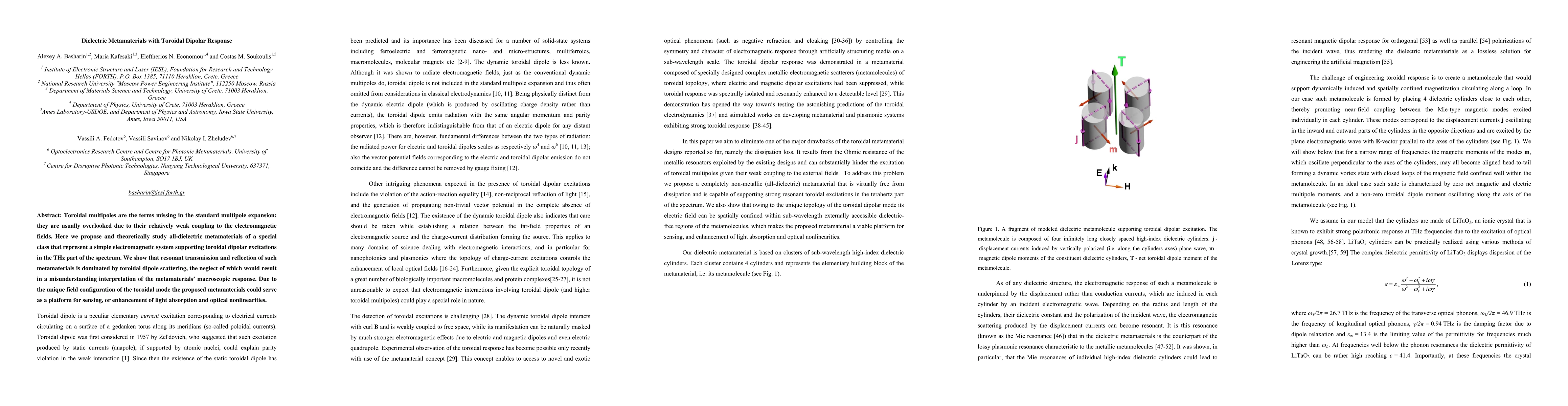 This paper proposes dielectric metamaterials supporting toroidal dipolar excitations in the THz range, demonstrating that toroidal dipole scattering significantly influences their transmission and reflection properties, thus enabling potential applications in sensing and optical enhancements.