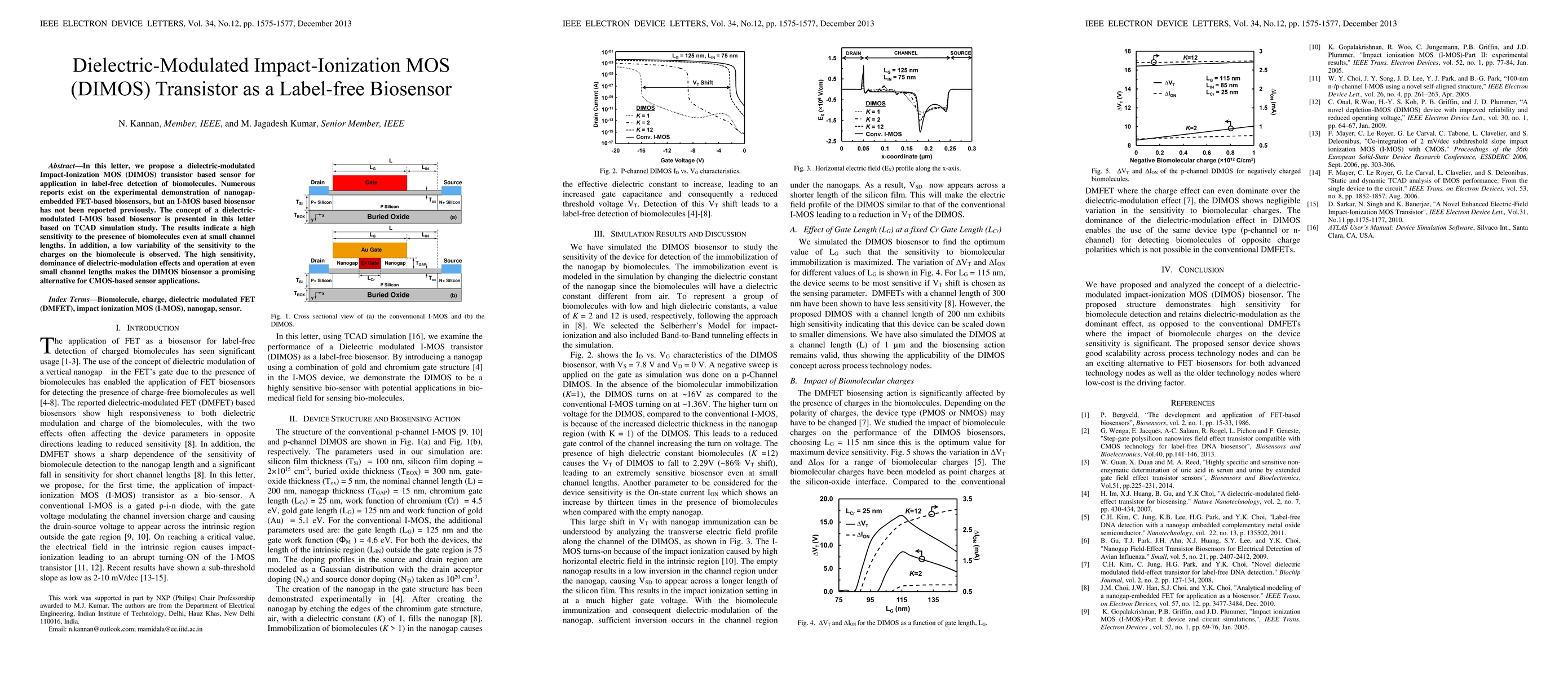 A novel DIMOS transistor is proposed for label-free detection of biomolecules with high sensitivity and low variability, making it a promising alternative to existing biosensors.