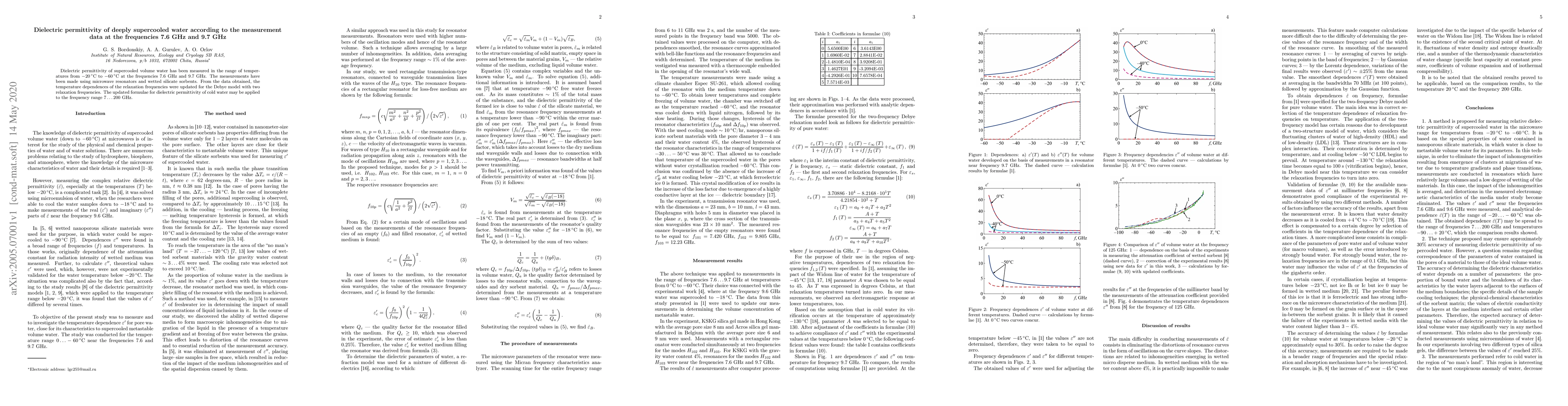 This technique may ensure approximately 30% accuracy of measuring dielectric permittivity of supercooled water