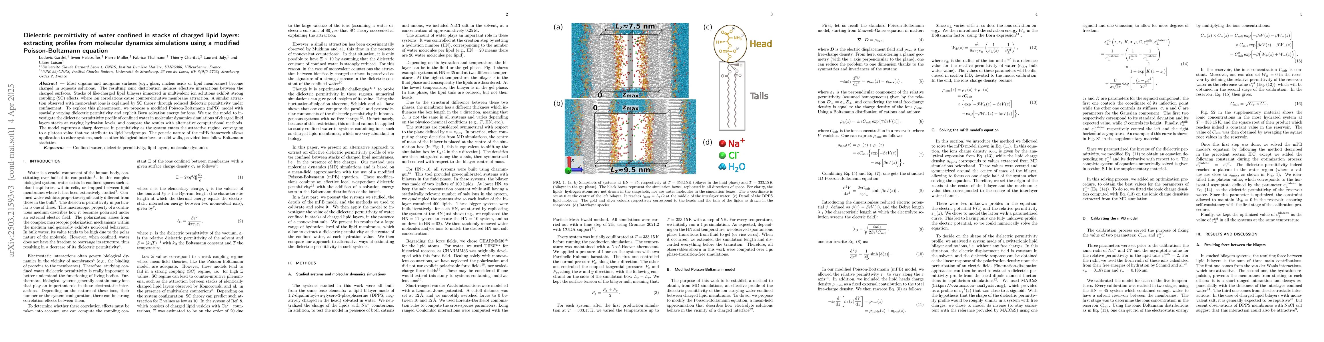 The research proposes a modified Poisson-Boltzmann (mPB) model with spatially varying dielectric permittivity to investigate the dielectric permittivity profile of confined water in molecular dynamics simulations of charged lipid layer stacks at varying hydration levels.