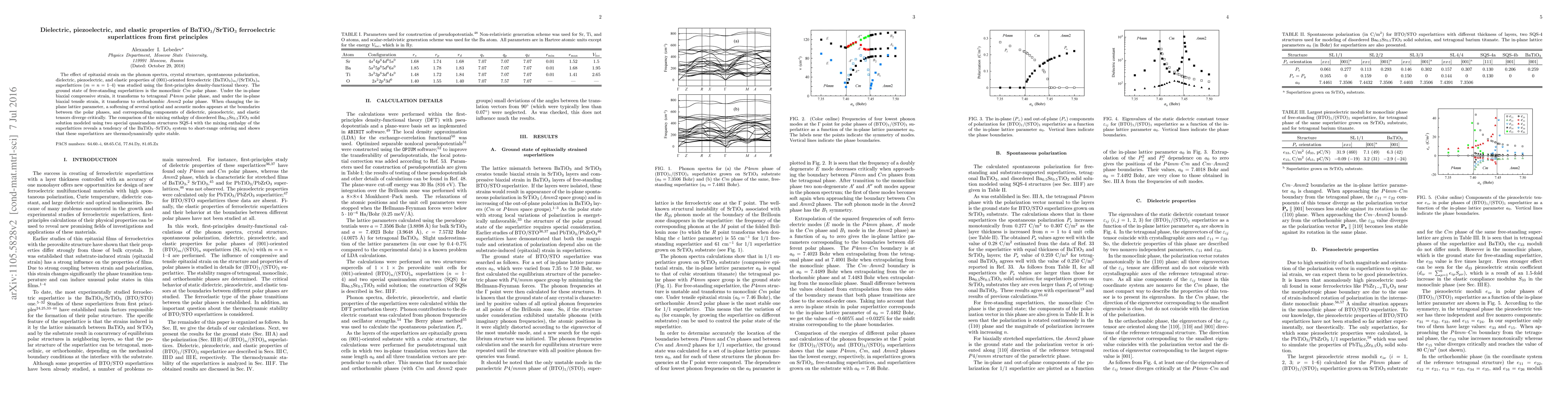 This research investigates the dielectric, piezoelectric, and elastic properties of BaTiO$_3$/SrTiO$_3$ ferroelectric superlattices under epitaxial strain using first-principles density-functional theory. The study finds phase transitions and critical softening of phonon modes at phase boundaries, contributing to significant variations in material properties.
