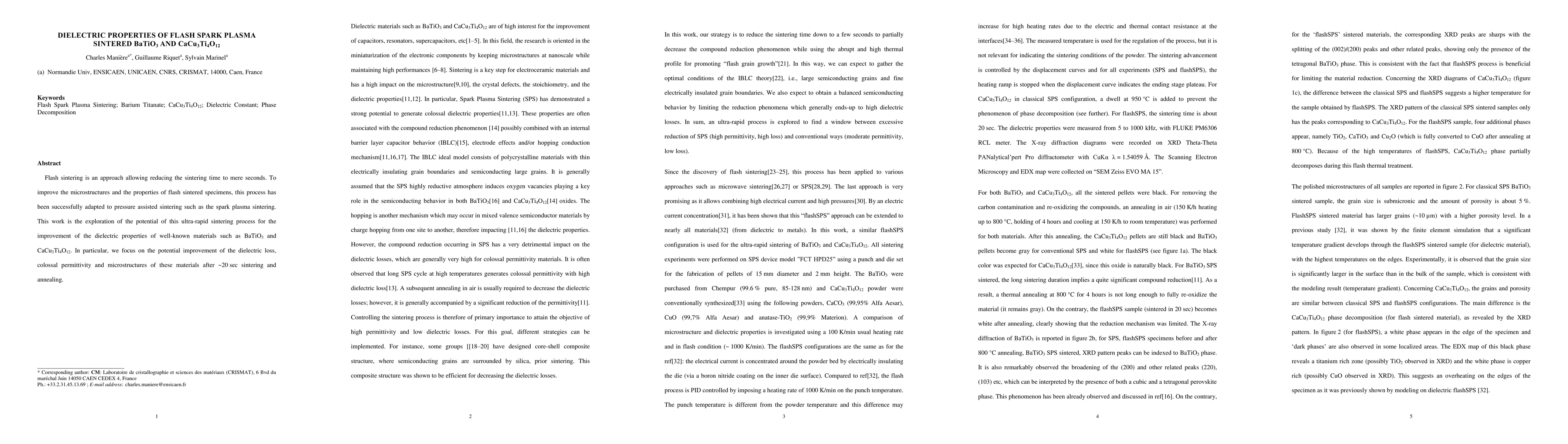 This study investigates the dielectric properties of flash spark plasma sintered BaTiO$_3$ and CaCu$_3$Ti$_4$O$_{12}$, focusing on the enhancement of dielectric loss through ultra-rapid sintering techniques. The results suggest significant improvements in the dielectric performance of these materials.
