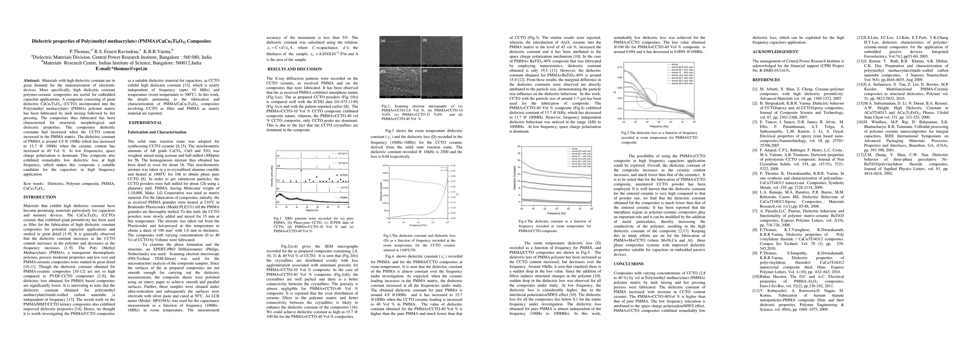 The research paper investigates the dielectric properties of PMMA/CaCu3Ti4O12 composites, revealing that incorporating CCTO ceramic significantly enhances the dielectric constant, making the composite suitable for high-frequency capacitor applications due to low dielectric loss.