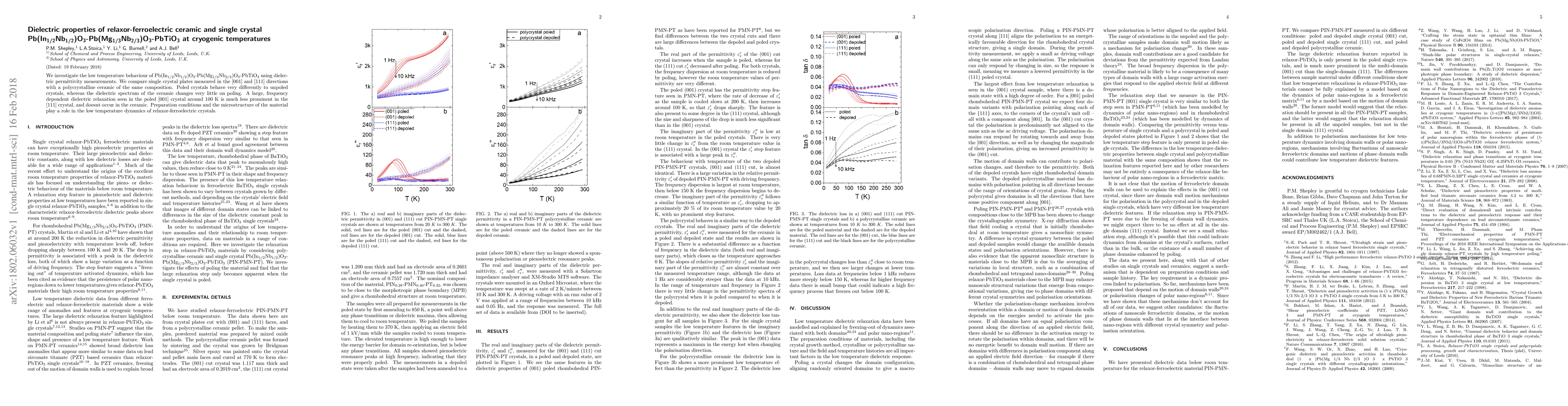 Researchers investigated dielectric properties of a relaxor-ferroelectric ceramic at cryogenic temperatures, finding that single crystals exhibited different behavior than polycrystalline ceramics.