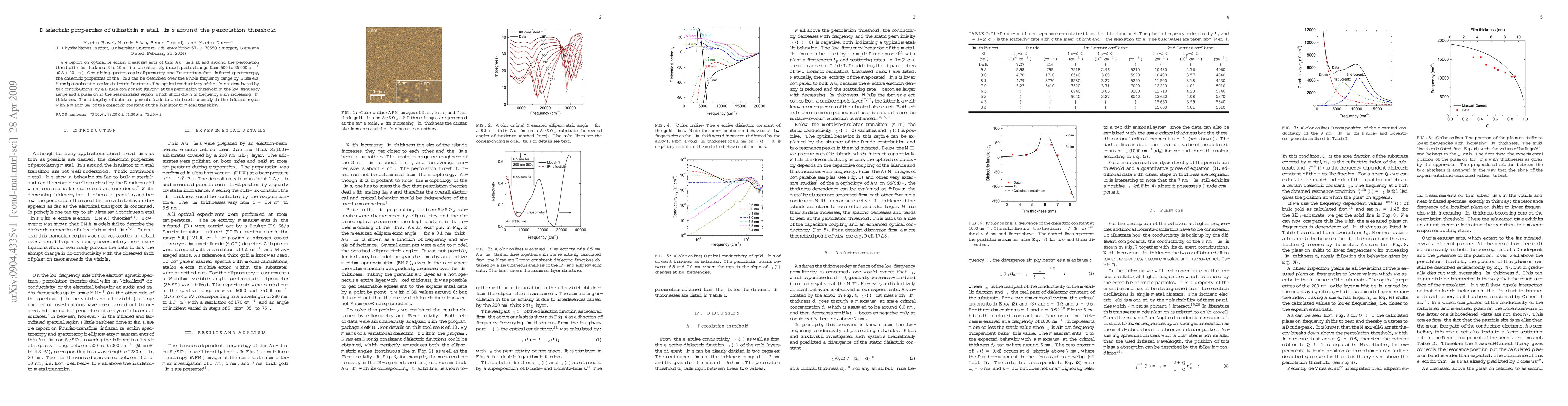This study investigates the dielectric properties of ultrathin gold films near the percolation threshold using optical reflection measurements across a broad spectral range. The findings reveal that the optical conductivity is influenced by a Drude-component and a plasmon, leading to a dielectric anomaly at the insulator-to-metal transition.