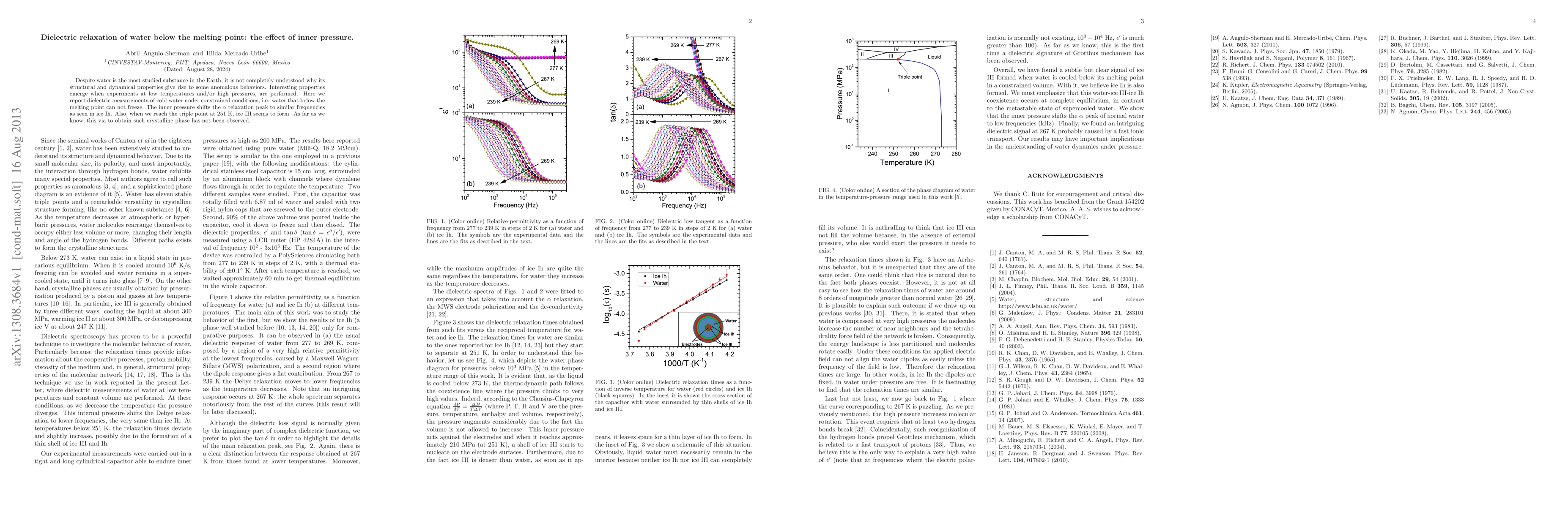 This study investigates dielectric relaxation in water under low temperatures and high inner pressures, revealing that the α relaxation peak shifts similarly to ice Ih and that reaching the triple point induces the formation of ice III, a crystalline phase not previously observed via this method.