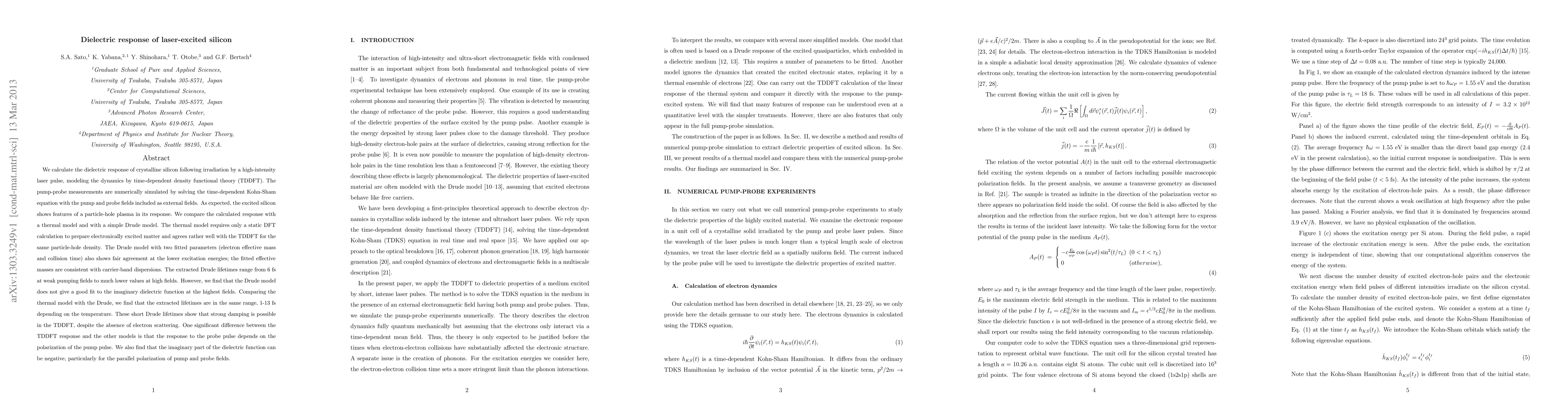 This study uses time-dependent density functional theory to model the dielectric response of laser-excited silicon, revealing a particle-hole plasma and comparing it with thermal and Drude models. The thermal model aligns well with TDDFT, while the Drude model shows fair agreement but fails at high fields, indicating strong damping and polarization-dependent responses.