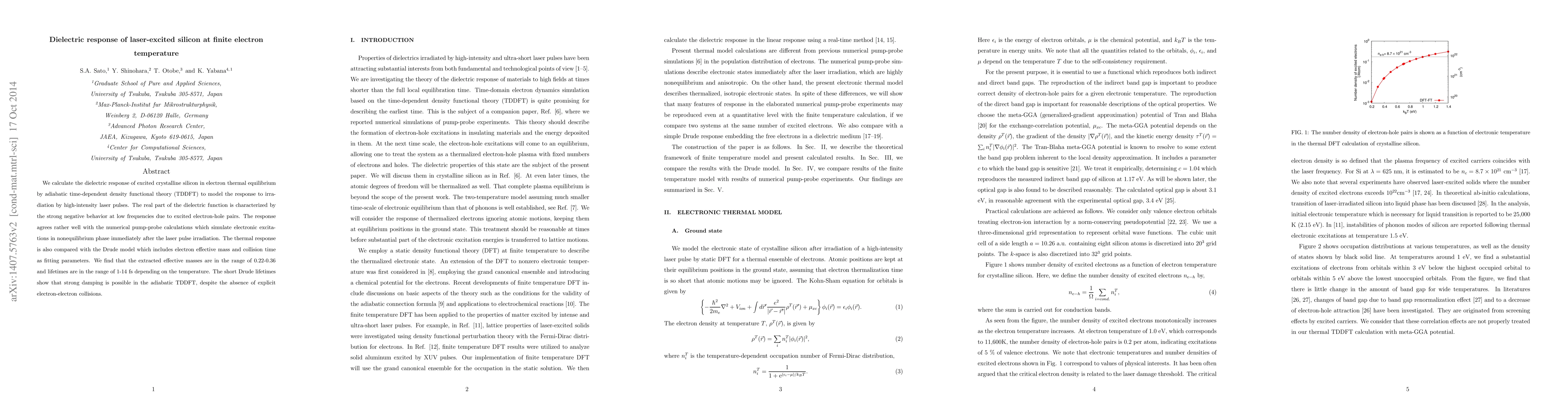 The paper presents a comprehensive TDDFT-based approach to model the dielectric response of laser-excited silicon, validated against numerical pump-probe calculations and the Drude model, providing effective masses and collision times as fitting parameters.