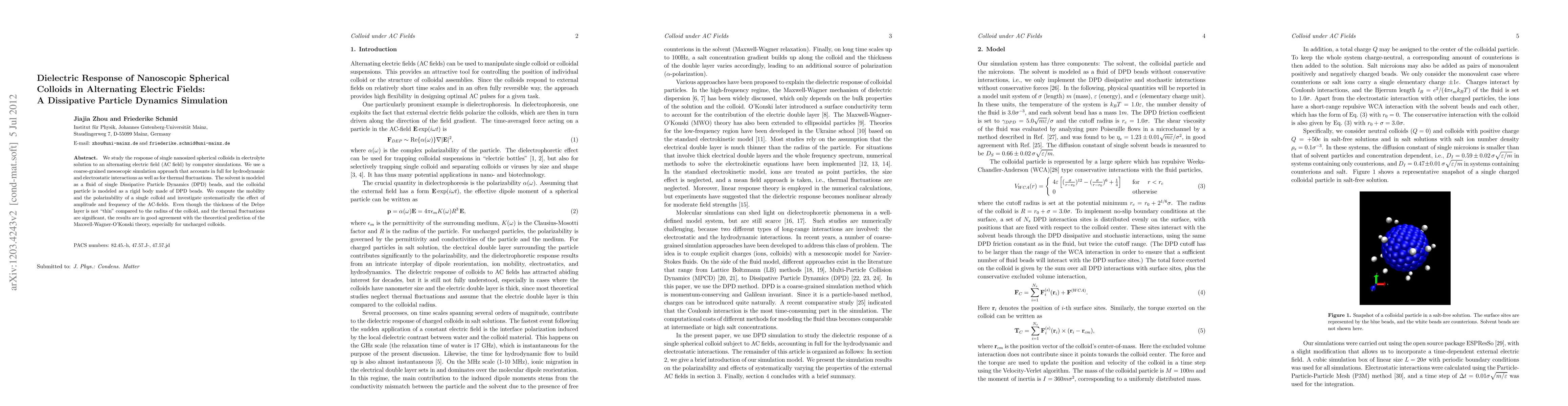 This study uses Dissipative Particle Dynamics simulations to investigate the dielectric response of nanoscopic spherical colloids in electrolyte solutions under alternating electric fields, focusing on mobility and polarizability. The results align well with theoretical predictions, particularly for uncharged colloids, despite significant thermal fluctuations and a relatively thick Debye layer.