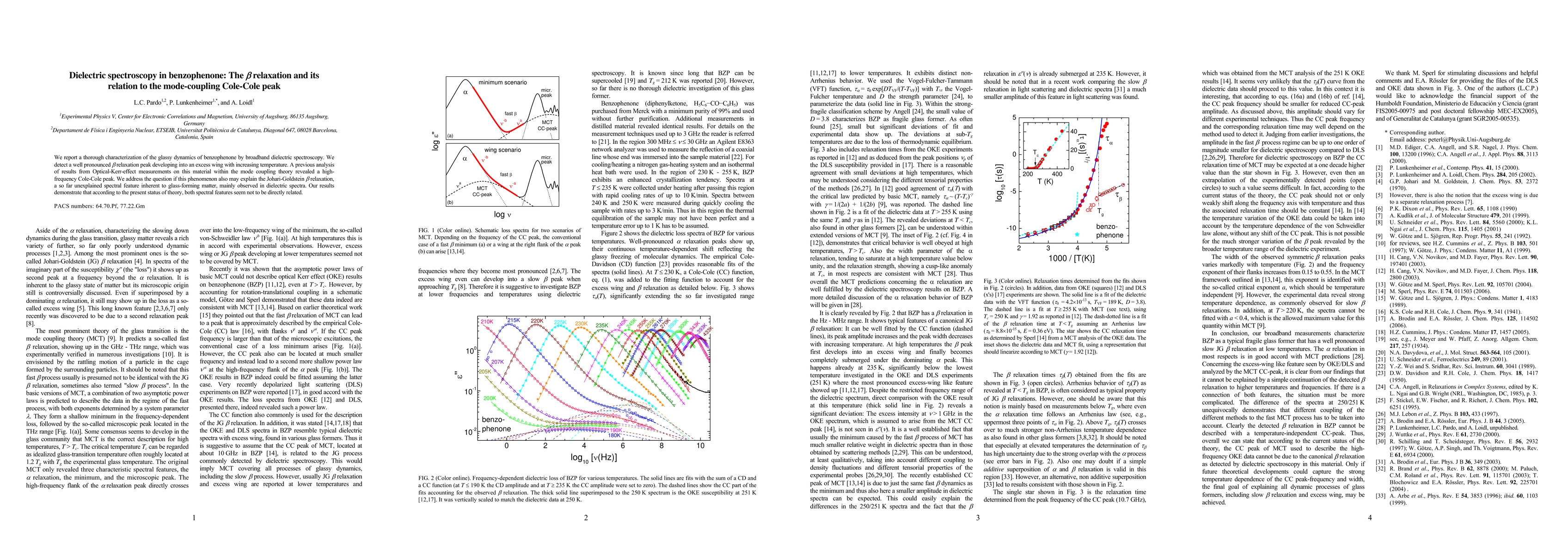 This paper uses dielectric spectroscopy to study the glassy dynamics of benzophenone, identifying a distinct beta relaxation peak that broadens with temperature. It finds no direct relationship between this beta relaxation and the high-frequency Cole-Cole peak observed in previous optical measurements, suggesting separate underlying mechanisms.