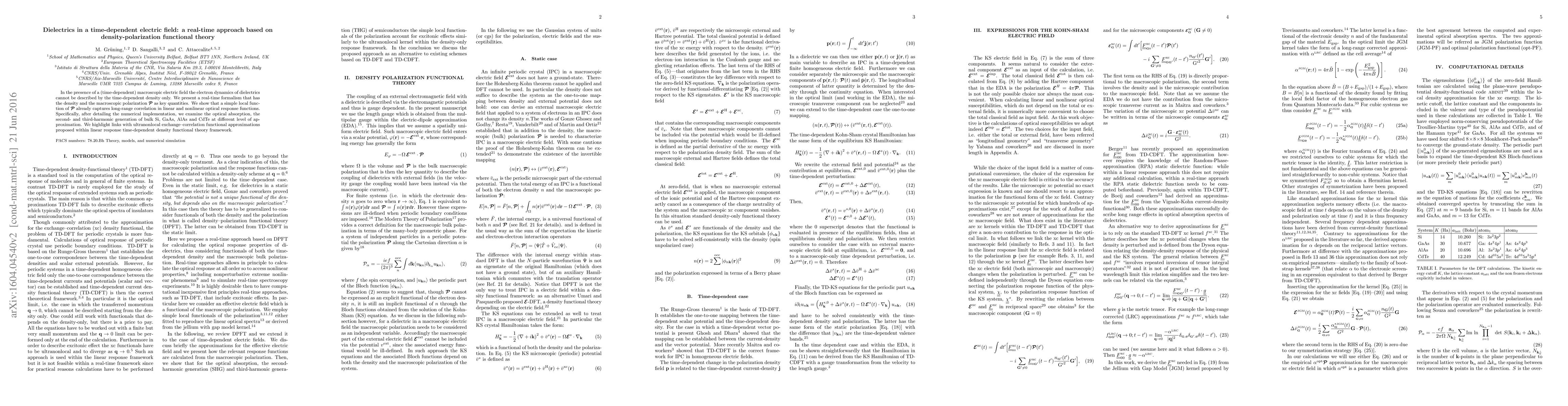 This paper introduces a real-time formalism for dielectrics under time-dependent electric fields, emphasizing density and polarization as key quantities. It demonstrates that a simple local function of polarization captures long-range correlations in optical responses, and examines optical absorption and harmonic generation in materials like Si, GaAs, AlAs, and CdTe.