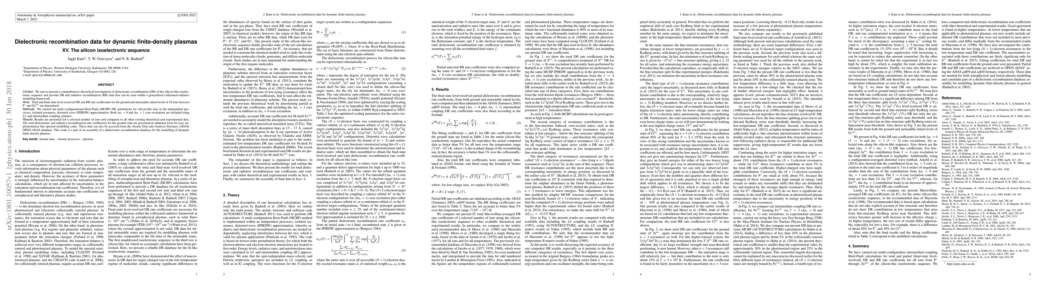 This paper provides comprehensive theoretical data on dielectronic recombination (DR) for the silicon-like isoelectronic sequence, offering DR and radiative recombination (RR) rate coefficients for 16 ions. The study employs multi-configurational Breit-Pauli (MCBP) calculations and is aimed at enhancing generalized collisional-radiative modelling for dynamic finite-density plasmas.