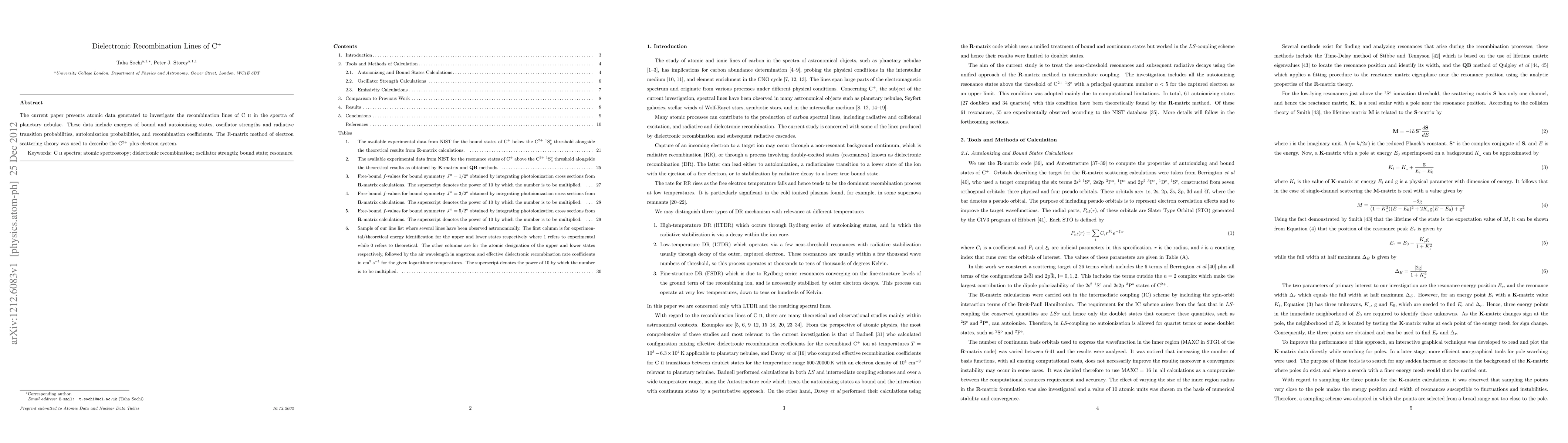 This paper provides detailed atomic data for C II, including energies, oscillator strengths, and recombination coefficients, generated using the R-matrix method to study dielectronic recombination lines in planetary nebulae spectra. The data aims to enhance the understanding of electron scattering processes in astrophysical environments.