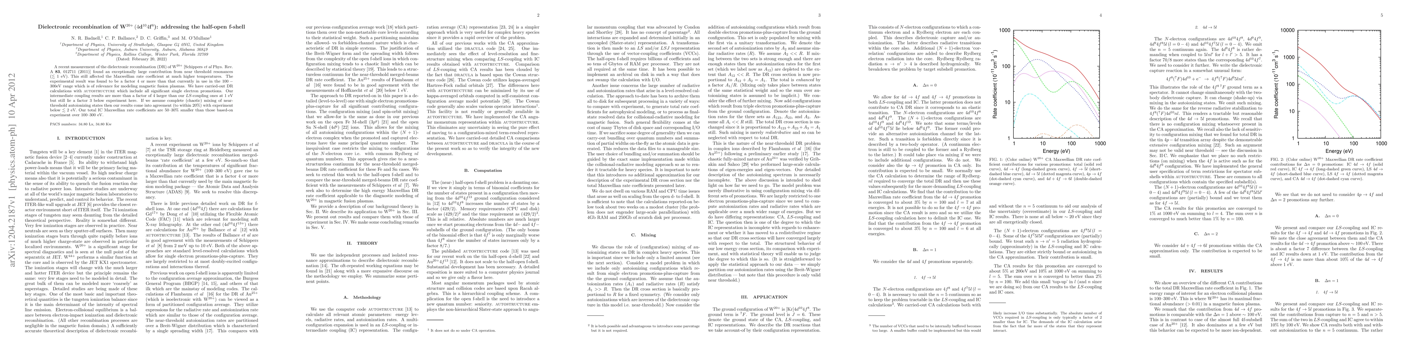 Researchers recalculated dielectronic recombination of W^20+ using AUTOSTRUCTURE, finding agreement with experiment below 2eV when assuming chaotic mixing of near-threshold autoionizing states.