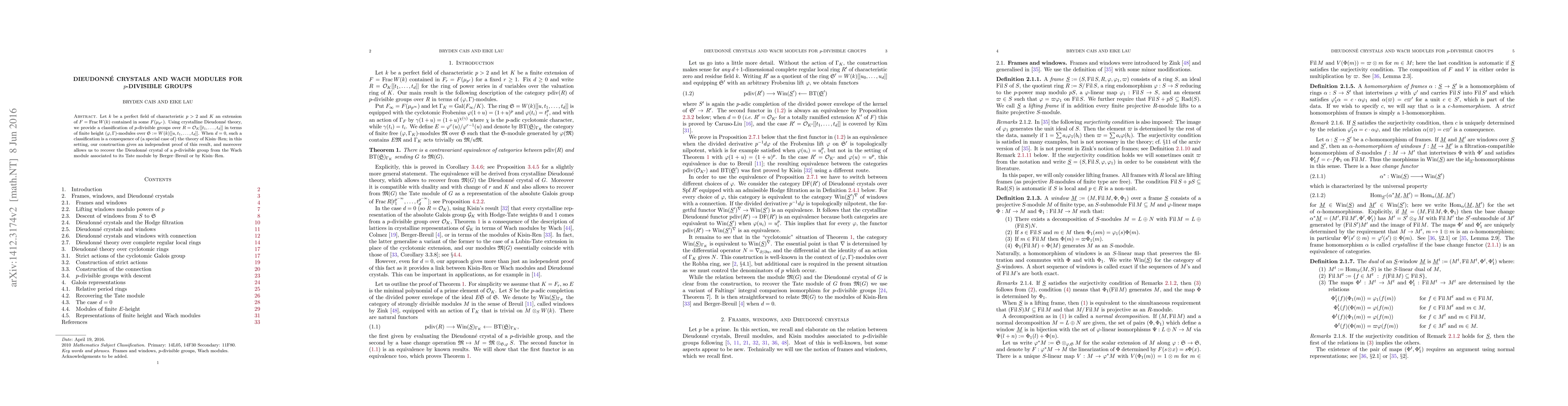 This research paper classifies p-divisible groups over a perfect field using crystalline Dieudonné theory and finite height modules, providing an independent proof of Kisin-Ren's theory.