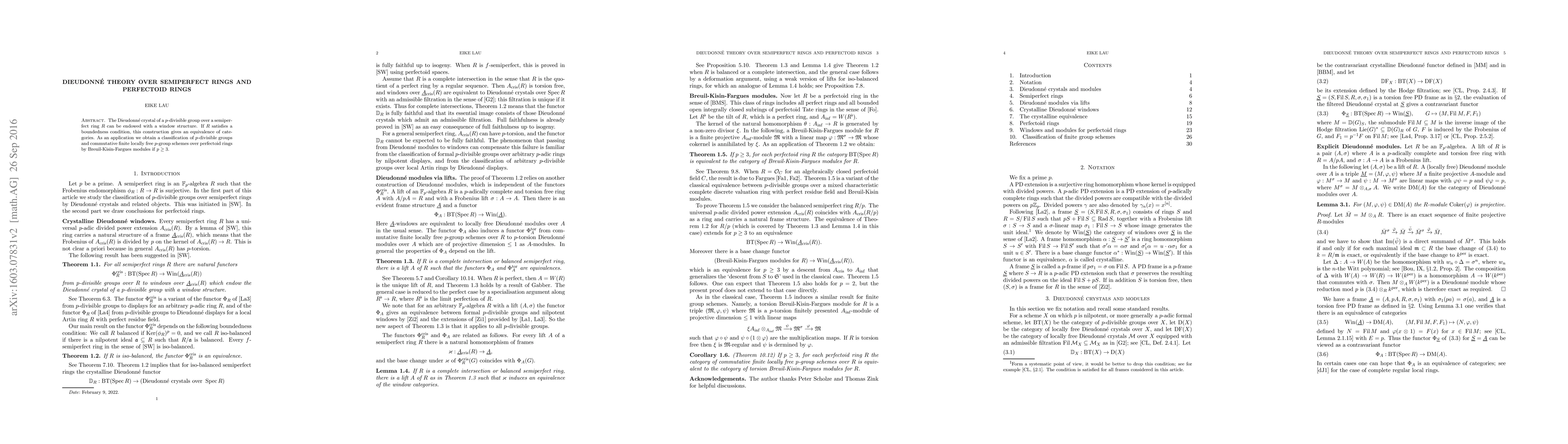 Summary: The paper explores the construction of a window structure on the Dieudonné crystal of p-divisible groups over semiperfect rings, showing equivalence under boundedness conditions. It also classifies p-divisible groups and commutative finite locally free p-group schemes over perfectoid rings using Breuil-Kisin-Fargues modules for p>2.