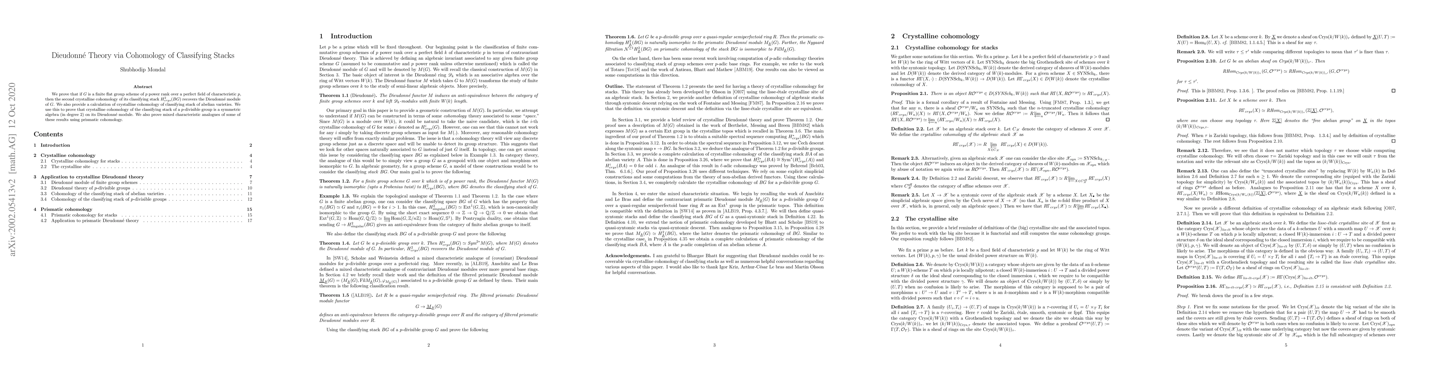 This paper establishes a connection between crystalline cohomology of classifying stacks and the Dieudonnée module for finite flat group schemes over fields of characteristic $p$, showing that $H^2_{crys}(BG)$ recovers the Dieudonnée module. It also explores the crystalline cohomology of classifying stacks of abelian varieties and $p$-divisible groups, proving they form symmetric algebras on their Dieudonnée modules, and extends these results to mixed characteristic using prismatic cohomology.