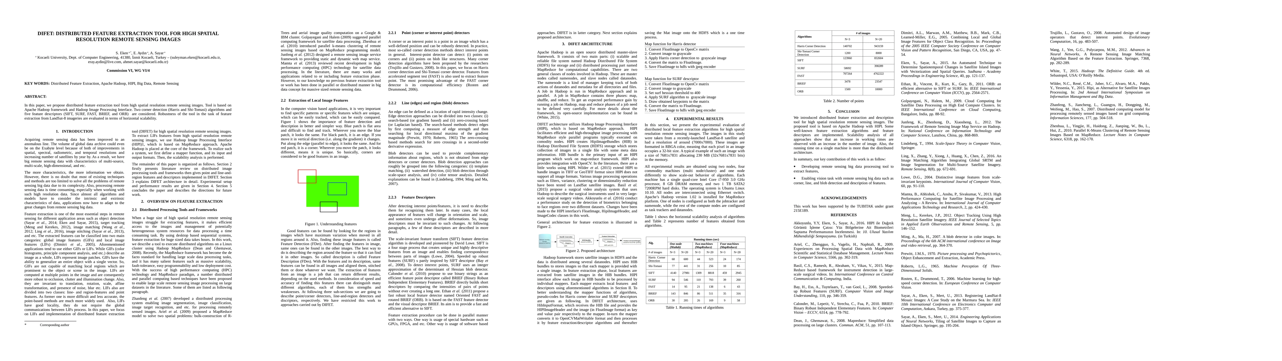 A distributed feature extraction tool was developed to extract features from high-resolution remote sensing images using Apache Hadoop framework, with a focus on scalability and robustness in land use applications.
