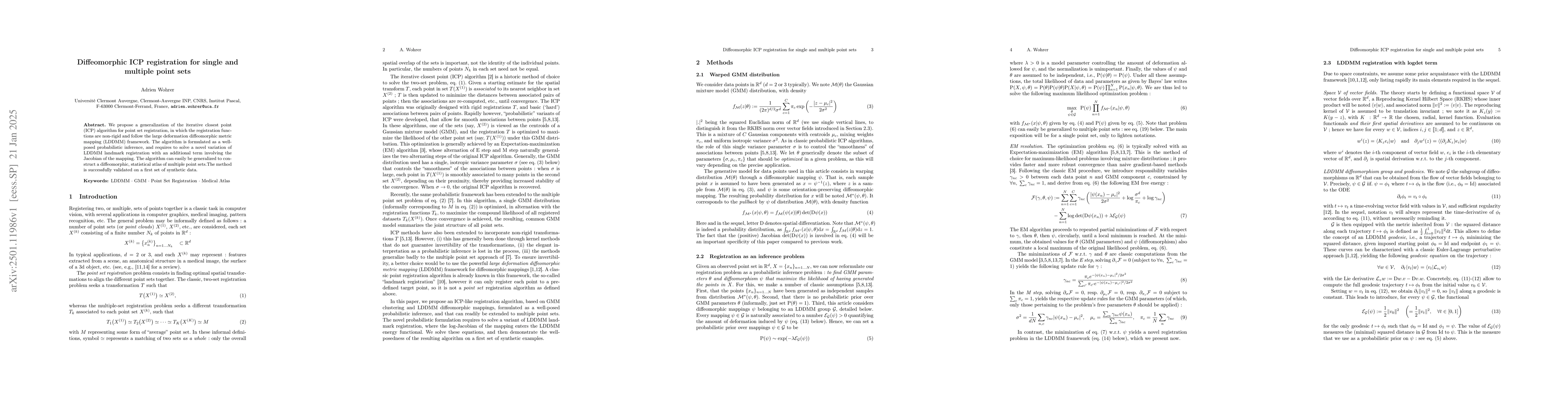 This research presents a generalized ICP algorithm that uses large deformation diffeomorphic metric mapping for non-rigid point set registration, framed as a probabilistic inference, and validated on synthetic data. The approach also extends to creating a statistical atlas from multiple point sets.