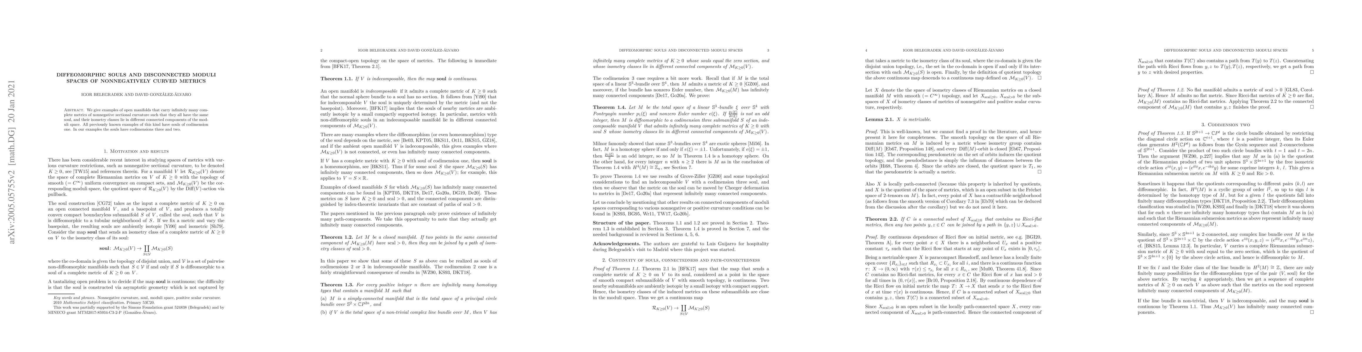 The paper introduces new examples of manifolds with disconnected moduli spaces under nonnegative curvature constraints, demonstrating souls of higher codimensions than previously known.