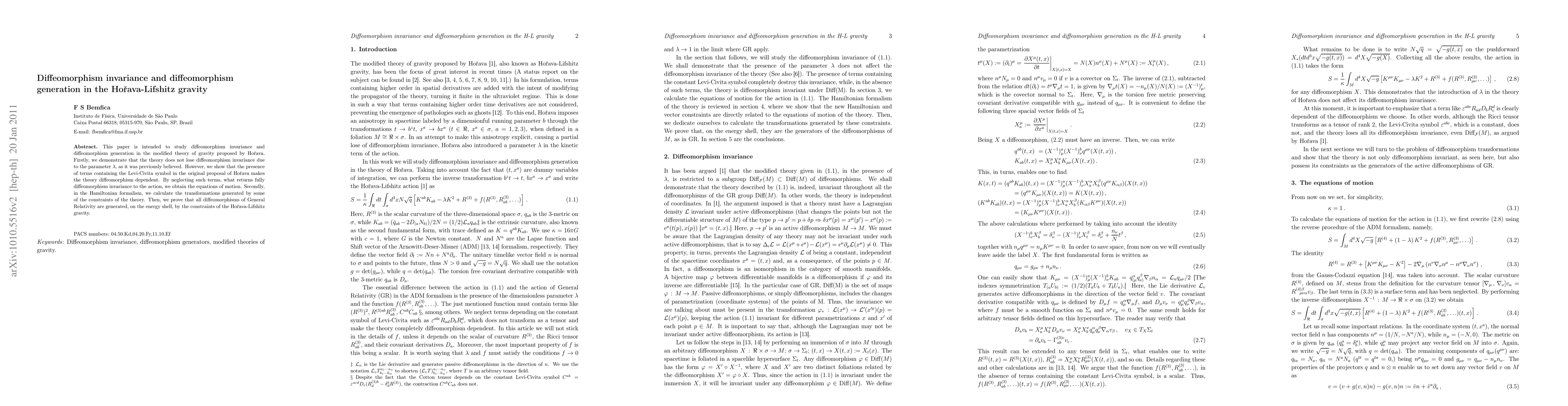 This paper is intended to study diffeomorphism invariance and diffeomorphism generation in the modified theory of gravity proposed by Horava. Firstly, we demonstrate that the theory does not lose diffeomorphism invariance due to the parameter $\lambda$, as it was previously believed. However, we show that the presence of terms containing the Levi-Civita symbol in the original proposal of Horava makes the theory diffeomorphism dependent. By neglecting such terms, what returns fully diffeomorphism invariance to the action, we obtain the equations of motion. Secondly, in the Hamiltonian formalism, we calculate the transformations generated by some of the constraints of the theory. Then, we prove that all diffeomorphisms of General Relativity are generated, on the energy shell, by the constraints of the Horava-Lifshitz gravity.
