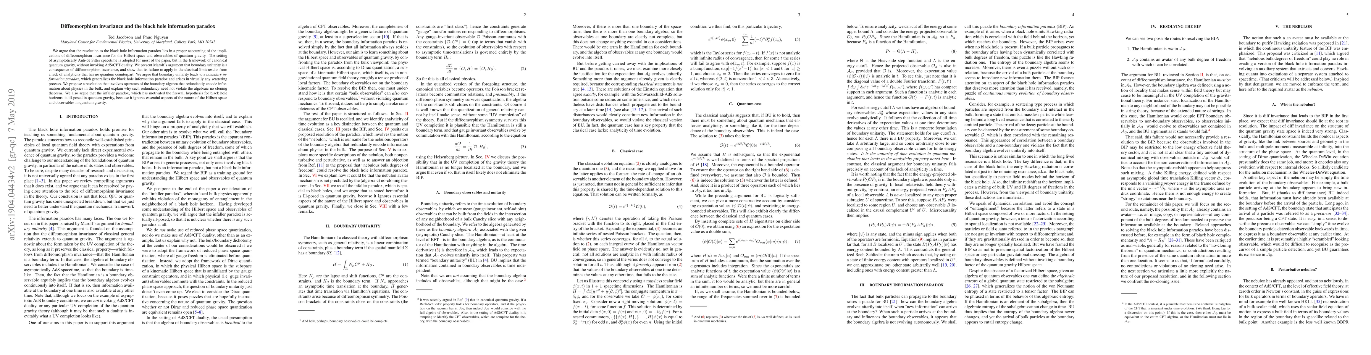 We argue that the resolution to the black hole information paradox lies in a proper accounting of the implications of diffeomorphism invariance for the Hilbert space and observables of quantum gravity. The setting of asymptotically Anti-de Sitter spacetime is adopted for most of the paper, but in the framework of canonical quantum gravity, without invoking AdS/CFT duality. We present Marolf's argument that boundary unitarity is a consequence of diffeomorphism invariance, and show that its failure to apply in the classical limit results from a lack of analyticity that has no quantum counterpart. We argue that boundary unitarity leads to a {\it boundary information paradox}, which generalizes the black hole information paradox and arises in virtually any scattering process. We propose a resolution that involves operators of the boundary algebra that redundantly encode information about physics in the bulk, and explain why such redundancy need not violate the algebraic no cloning theorem. We also argue that the infaller paradox, which has motivated the firewall hypothesis for black hole horizons, is ill-posed in quantum gravity, because it ignores essential aspects of the nature of the Hilbert space and observables in quantum gravity.