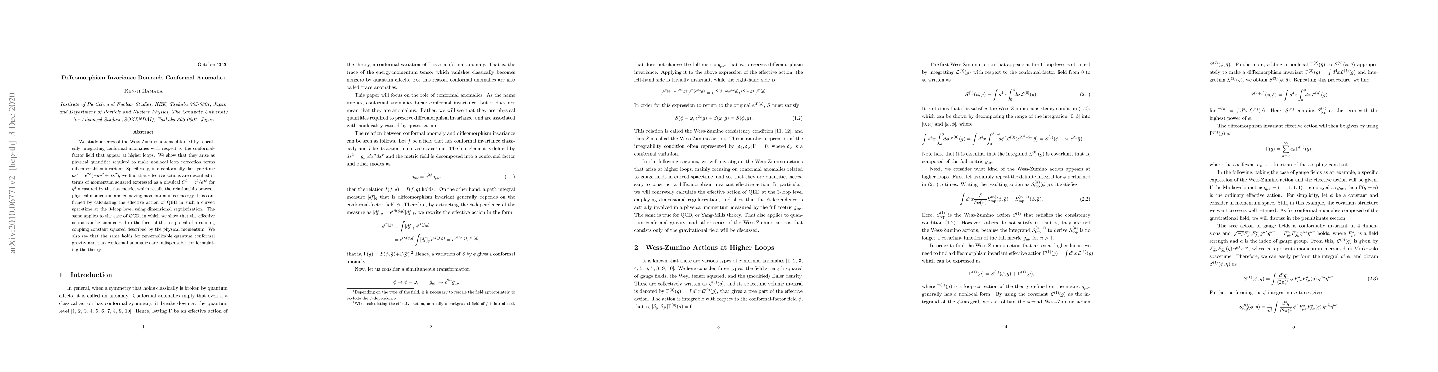We study a series of the Wess-Zumino actions obtained by repeatedly integrating conformal anomalies with respect to the conformal-factor field that appear at higher loops. We show that they arise as physical quantities required to make nonlocal loop correction terms diffeomorphism invariant. Specifically, in a conformally flat spacetime $ds^2=e^{2\phi}(-d\eta^2 + d{\bf x}^2)$, we find that effective actions are described in terms of momentum squared expressed as a physical $Q^2 = q^2/e^{2\phi}$ for $q^2$ measured by the flat metric, which recalls the relationship between physical momentum and comoving momentum in cosmology. It is confirmed by calculating the effective action of QED in such a curved spacetime at the 3-loop level using dimensional regularization. The same applies to the case of QCD, in which we show that the effective action can be summarized in the form of the reciprocal of a running coupling constant squared described by the physical momentum. We also see that the same holds for renormalizable quantum conformal gravity and that conformal anomalies are indispensable for formulating the theory.