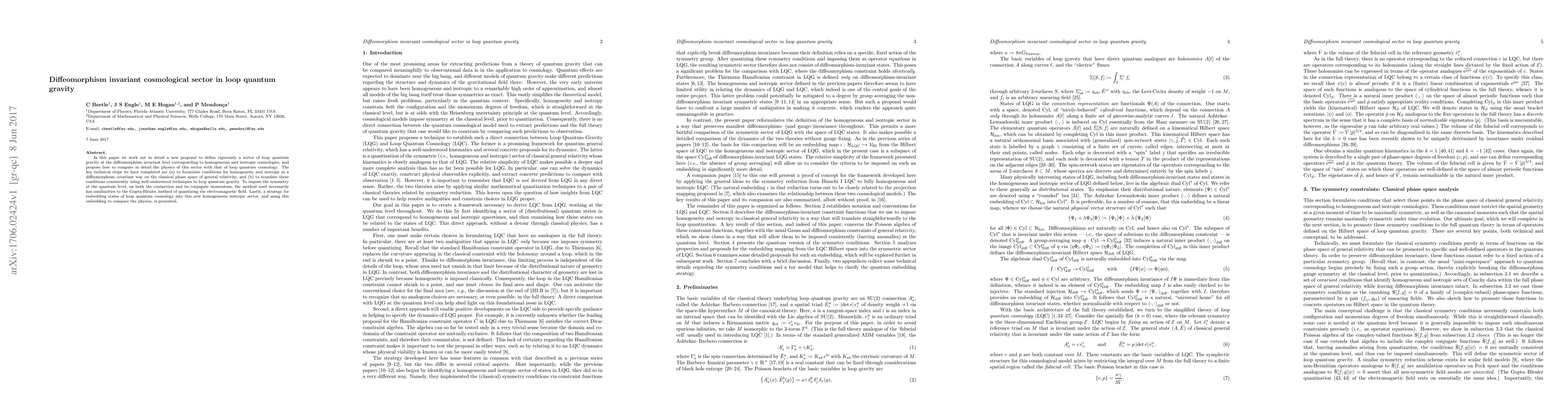 This paper proposes a rigorous definition of a diffeomorphism invariant sector in loop quantum gravity for homogeneous and isotropic cosmologies, formulating conditions for these symmetries and translating them into quantum gravity using techniques akin to the Gupta-Bleuler method. A strategy for comparing this sector with loop quantum cosmology is also presented.