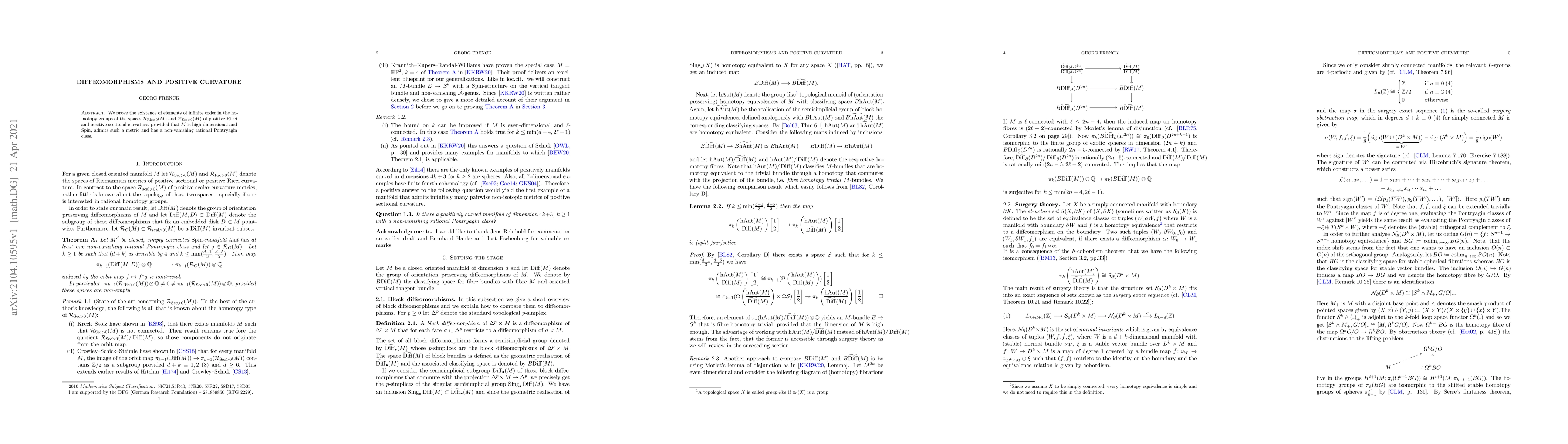 We prove the existence of elements of infinite order in the homotopy groups of the spaces $\mathcal{R}_{Ric>0}(M)$ and $\mathcal{R}_{sec>0}(M)$ of positive Ricci and positive sectional curvature, provided that $M$ is high-dimensional and Spin, admits such a metric and has a non-vanishing rational Pontryagin class.