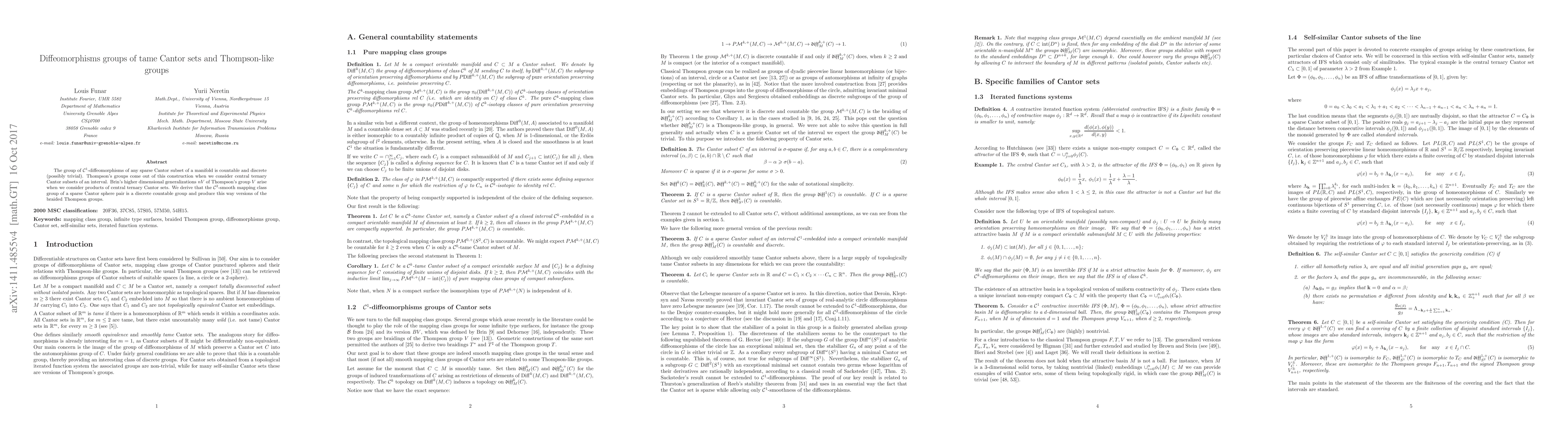 This research paper explores the group of diffeomorphisms of tame Cantor sets and their relation to Thompson-like groups, finding that these groups are discrete and countable for certain constructions.