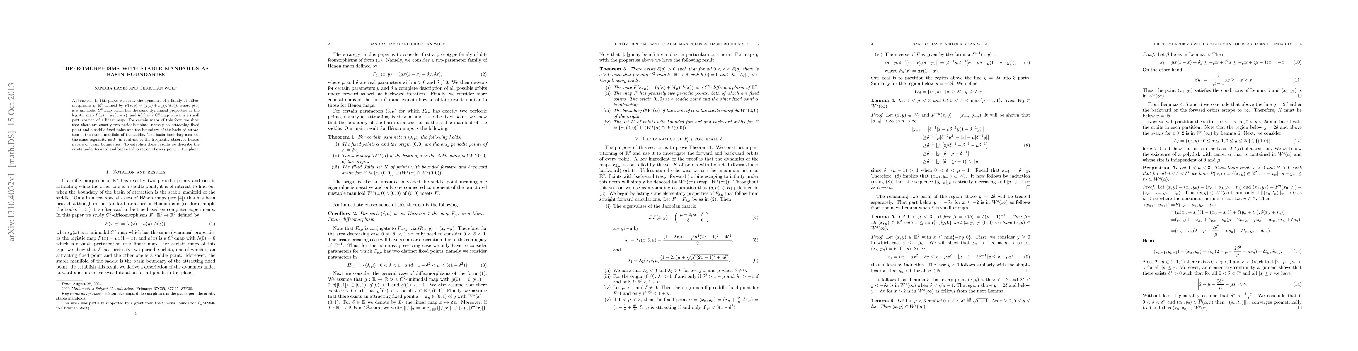 This paper investigates the dynamics of a family of $C^2$ diffeomorphisms in $\bR^2$ with a unimodal map $g(x)$ and a small perturbation $h(x)$. It demonstrates that certain maps exhibit exactly two periodic points, with the basin boundary coinciding with the stable manifold of a saddle point, maintaining the same regularity as the map itself.