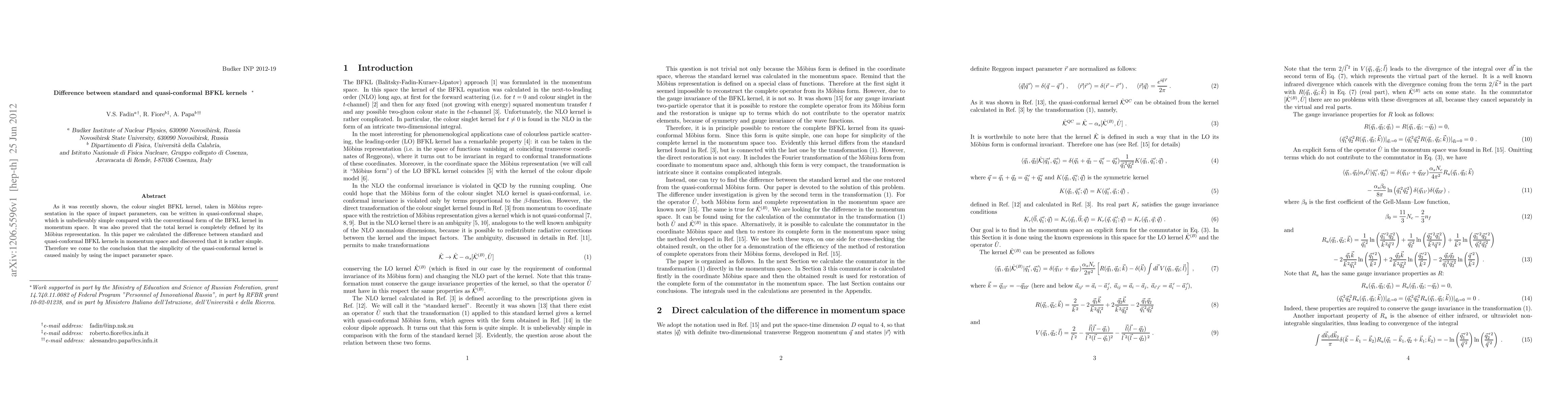 As it was recently shown, the colour singlet BFKL kernel, taken in Moebius representation in the space of impact parameters, can be written in quasi-conformal shape, which is unbelievably simple compared with the conventional form of the BFKL kernel in momentum space. It was also proved that the total kernel is completely defined by its Moebius representation. In this paper we calculated the difference between standard and quasi-conformal BFKL kernels in momentum space and discovered that it is rather simple. Therefore we come to the conclusion that the simplicity of the quasi-conformal kernel is caused mainly by using the impact parameter space.