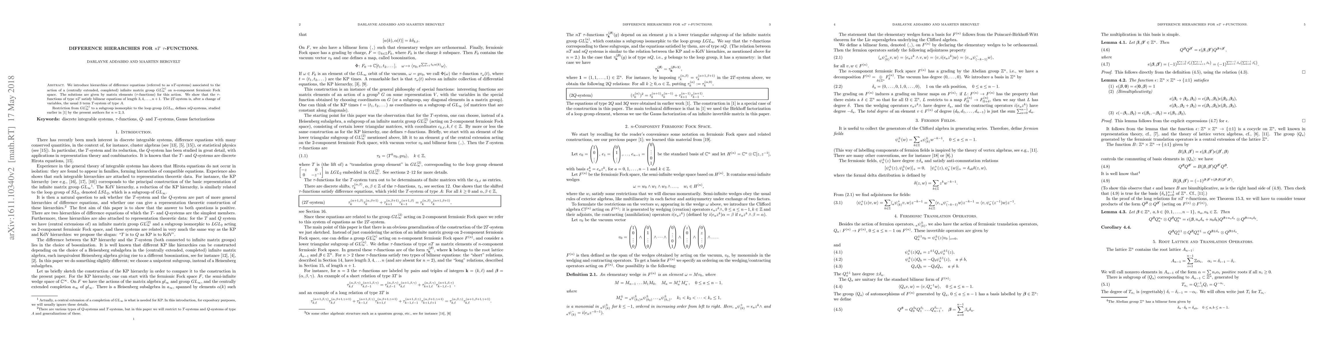 We introduce hierarchies of difference equations (referred to as $nT$-systems) associated to the action of a (centrally extended, completed) infinite matrix group $GL_{\infty}^{(n)}$ on $n$-component fermionic Fock space. The solutions are given by matrix elements ($\tau$-functions) for this action. We show that the $\tau$-functions of type $nT$ satisfy bilinear equations of length $3,4,\dots,n+1$. The $2T$-system is, after a change of variables, the usual $3$ term $T$-system of type $A$. Restriction from $GL_{\infty}^{(n)}$ to a subgroup isomorphic to the loop group $LGL_{n}$, defines $nQ$-systems, studied earlier by the present authors for $n=2,3$.