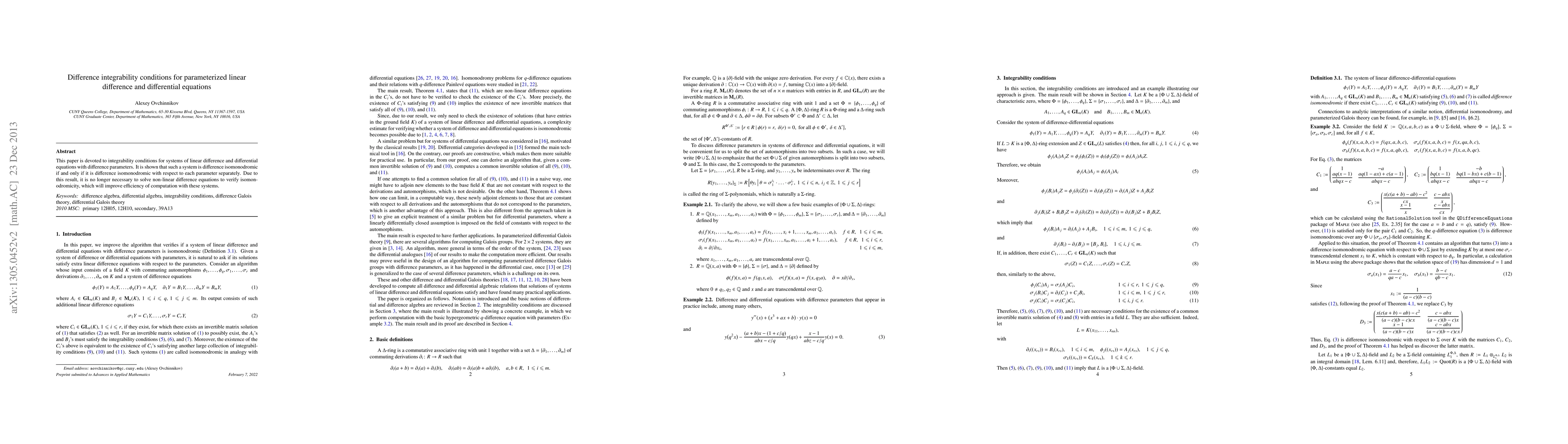 This paper explores integrability conditions for linear difference and differential equations with parameterized parameters, revealing that a system is difference isomonodromic if and only if it is so for each parameter individually, thus simplifying computational verification of isomonodromicity.