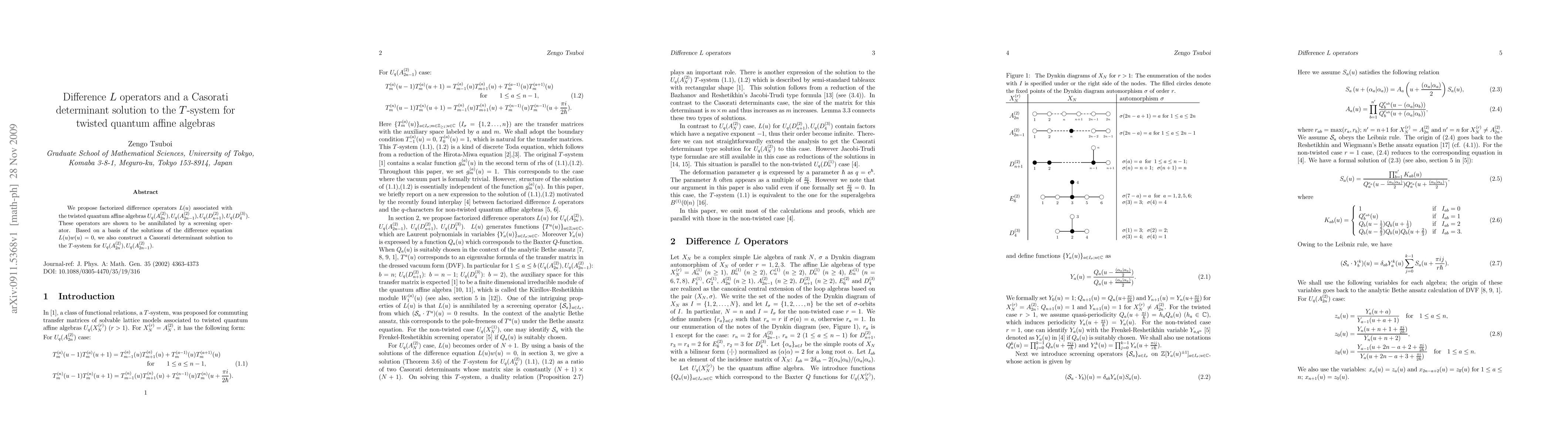 We propose factorized difference operators L(u) associated with the twisted quantum affine algebras U_{q}(A^{(2)}_{2n}),U_{q}(A^{(2)}_{2n-1}), U_{q}(D^{(2)}_{n+1}),U_{q}(D^{(3)}_{4}). These operators are shown to be annihilated by a screening operator. Based on a basis of the solutions of the difference equation L(u)w(u)=0, we also construct a Casorati determinant solution to the T-system for U_{q}(A^{(2)}_{2n}),U_{q}(A^{(2)}_{2n-1}).