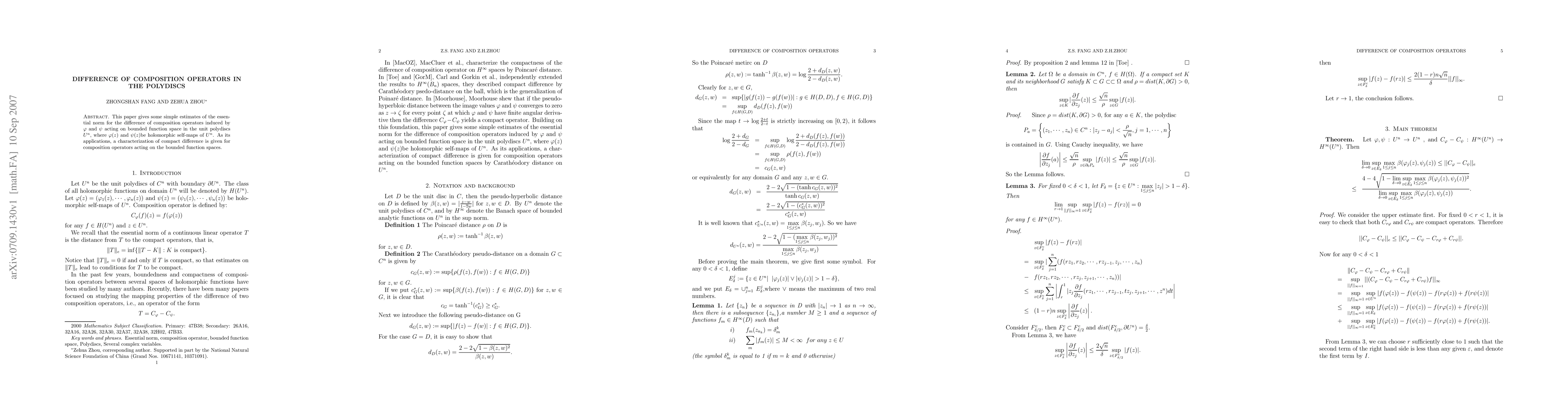 This paper gives some simple estimates of the essential norm for the difference of composition operators induced by $\phi$ and $\psi$ acting on bounded function space in the unit polydiscs $U^n$, where $\phi(z)$ and $\psi(z)$be holomorphic self-maps of $U^n$. As its applications, a characterization of compact difference is given for composition operators acting on the bounded function spaces.