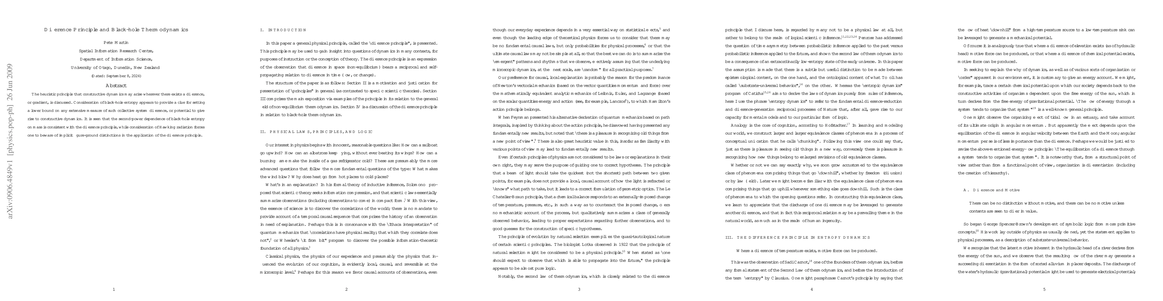 The heuristic principle that constructive dynamics may arise wherever there exists a difference, or gradient, is discussed. Consideration of black-hole entropy appears to provide a clue for setting a lower bound on any extensive measure of such collective system difference, or potential to give rise to constructive dynamics. It is seen that the second-power dependence of black-hole entropy on mass is consistent with the difference principle, while consideration of Hawking radiation forces one to beware of implicit figure-ground distinctions in the application of the difference principle.