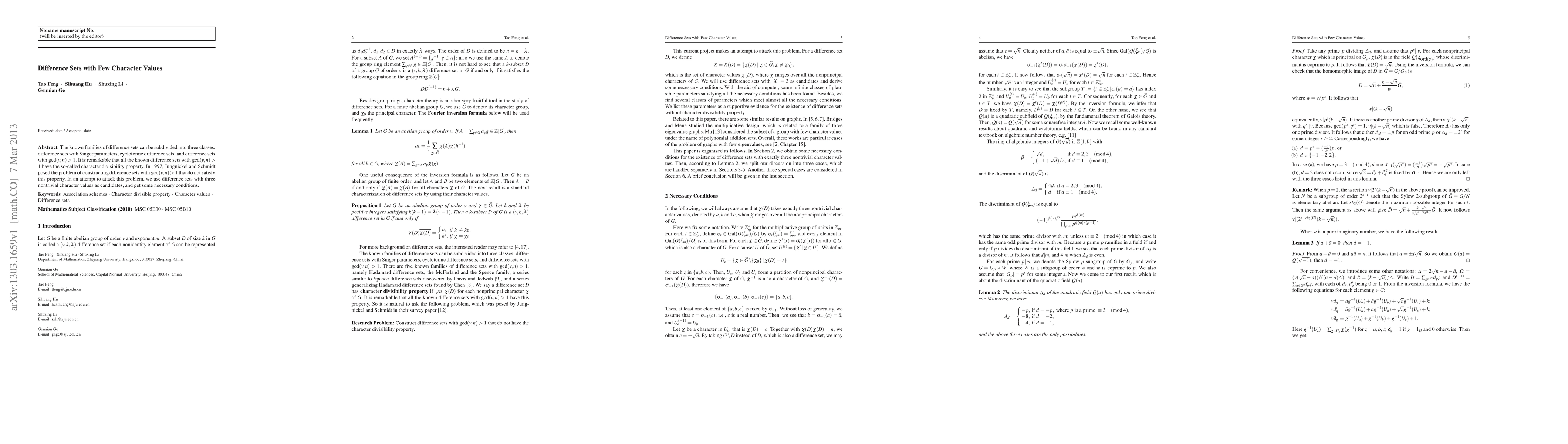 This paper explores the construction of difference sets with gcd(v,n)>1 that do not possess the character divisibility property, focusing on sets with three nontrivial character values and deriving necessary conditions for such constructions. The study aims to address a longstanding problem posed by Jungnickel and Schmidt in 1997.