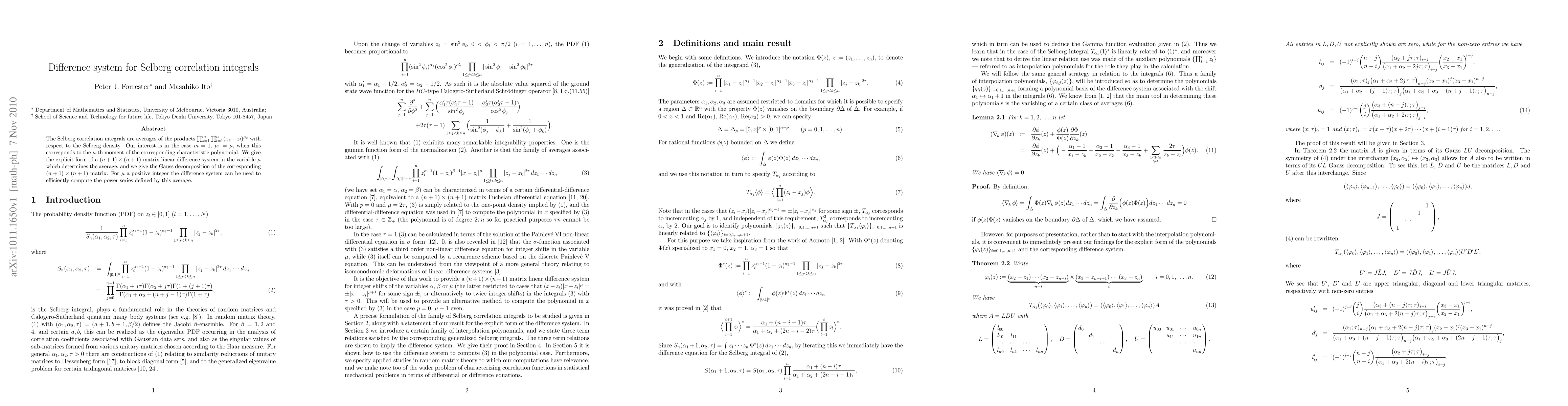 A difference system for Selberg correlation integrals is introduced to efficiently compute averages of characteristic polynomials, providing a matrix-based approach for computing the power series defined by these integrals.