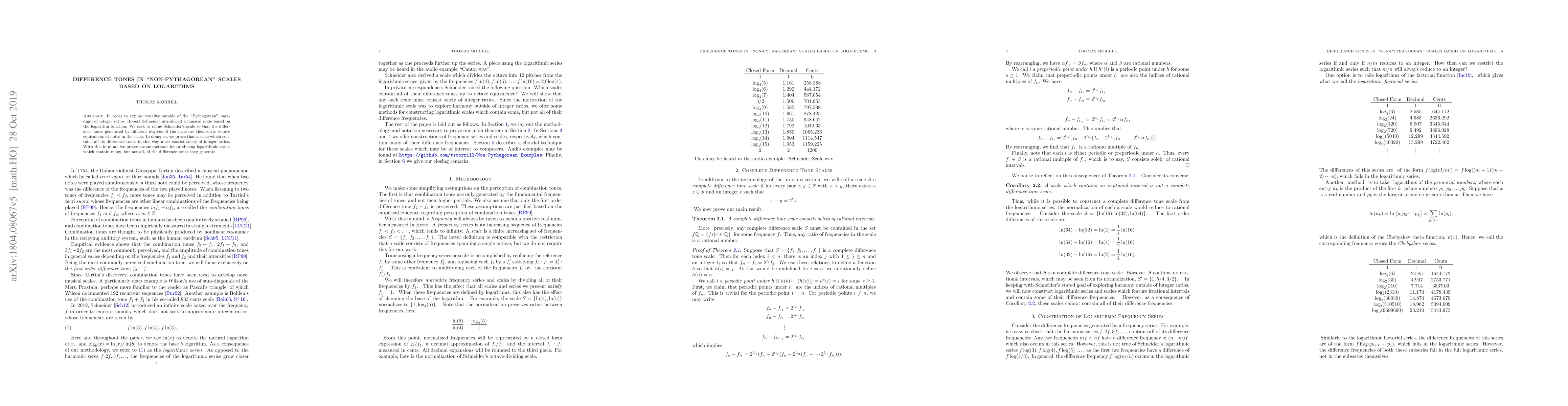 In order to explore tonality outside of the `Pythagorean' paradigm of integer ratios, Robert Schneider introduced a musical scale based on the logarithm function. We seek to refine Schneider's scale so that the difference tones generated by different degrees of the scale are themselves octave equivalents of notes in the scale. In doing so, we prove that a scale which contains all its difference tones in this way must consist solely of integer ratios. With this in mind, we present some methods for producing logarithmic scales which contain many, but not all, of the difference tones they generate.