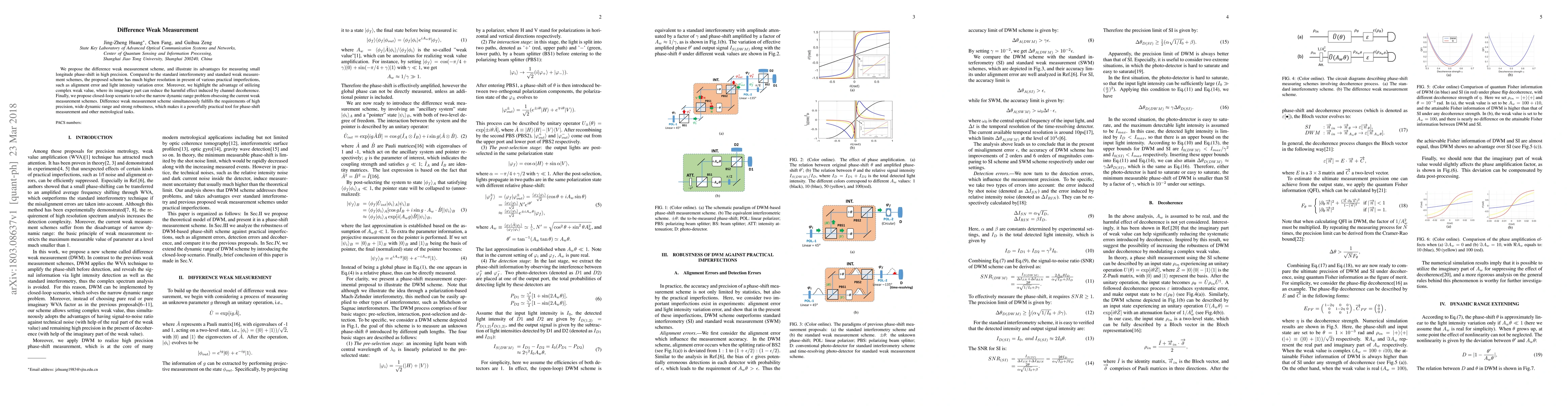 The paper proposes a difference weak measurement scheme for high-precision longitude phase-shift measurement, offering superior resolution over standard interferometry and weak measurement methods, especially in the presence of practical imperfections. It also leverages complex weak values to mitigate the effects of channel decoherence and introduces a closed-loop scenario to address dynamic range limitations.