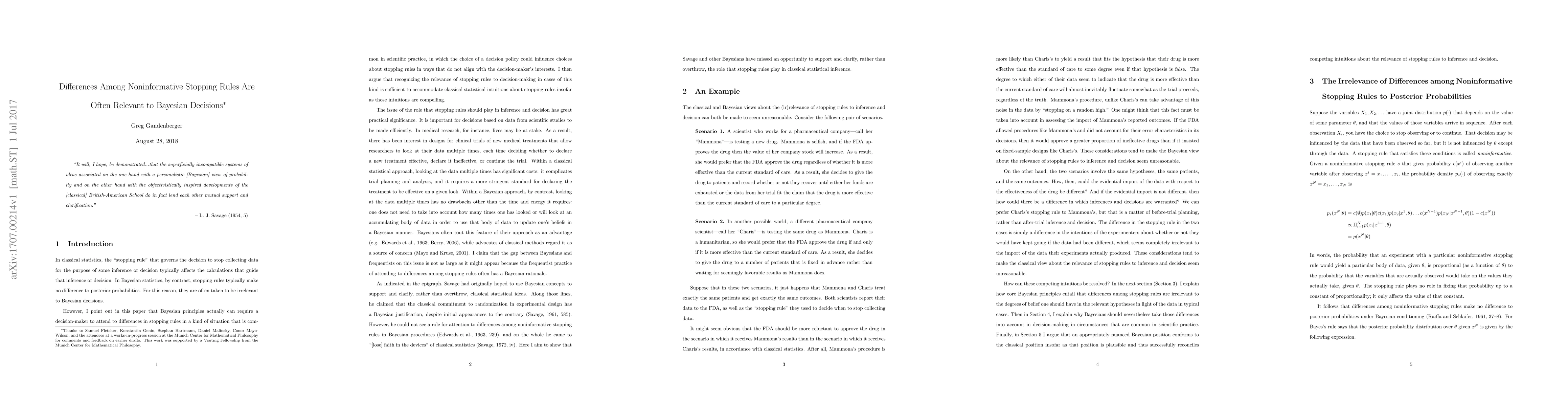 This paper argues that differences among noninformative stopping rules, which seem irrelevant from a Bayesian perspective, can affect classical statistical decisions. It demonstrates that Bayesian principles provide qualified support for penalizing biased stopping rules, but only in a specific context where classical statistical arguments are compelling, thus clarifying classical statistical practices.