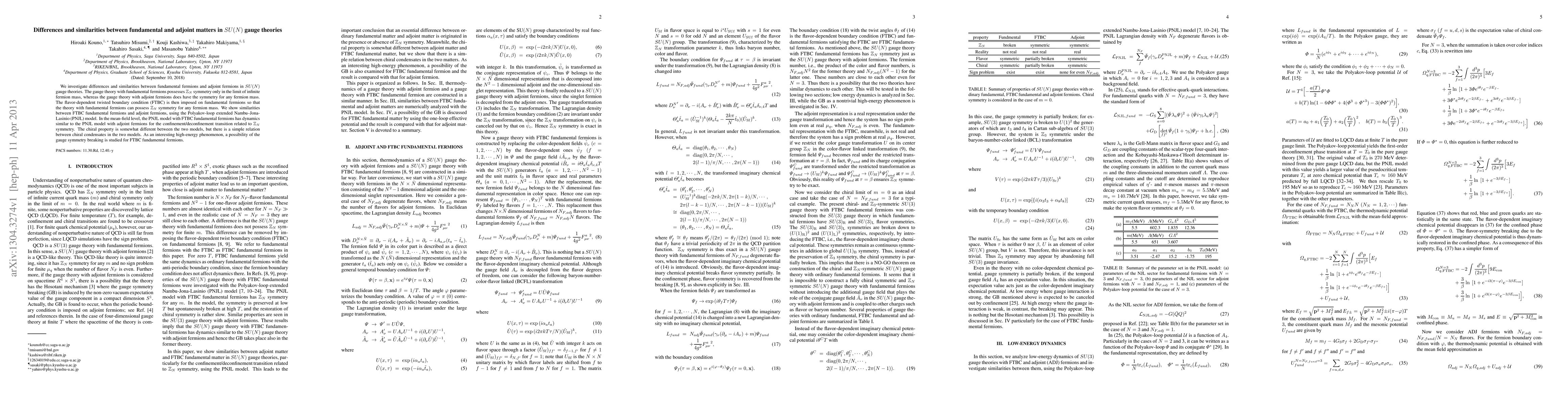 This paper explores the differences and similarities between fundamental and adjoint fermions in SU(N) gauge theories, showing that while fundamental fermions require flavor-dependent twisted boundary conditions to maintain ZN symmetry, adjoint fermions naturally possess this symmetry. The study reveals comparable dynamics between these fermions using the PNJL model, with notable similarities in confinement/deconfinement transitions and a simple relation between their chiral condensates.