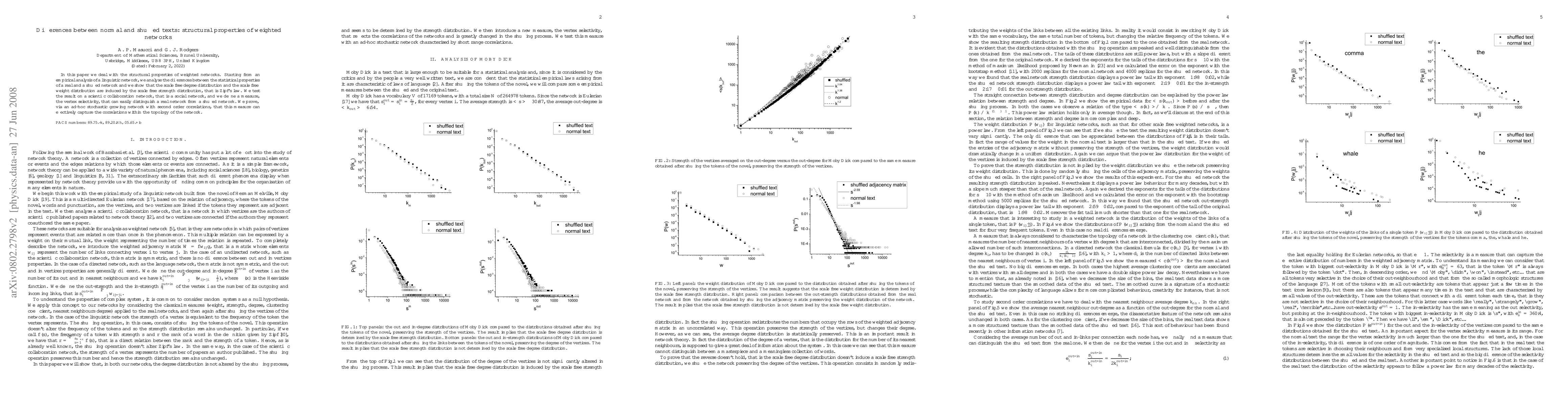 This paper investigates the structural properties of weighted networks by comparing real and shuffled linguistic networks. It finds that the scale-free degree and weight distributions arise from the scale-free strength distribution, or Zipf's law, and introduces a vertex selectivity measure to distinguish real networks from shuffled ones.
