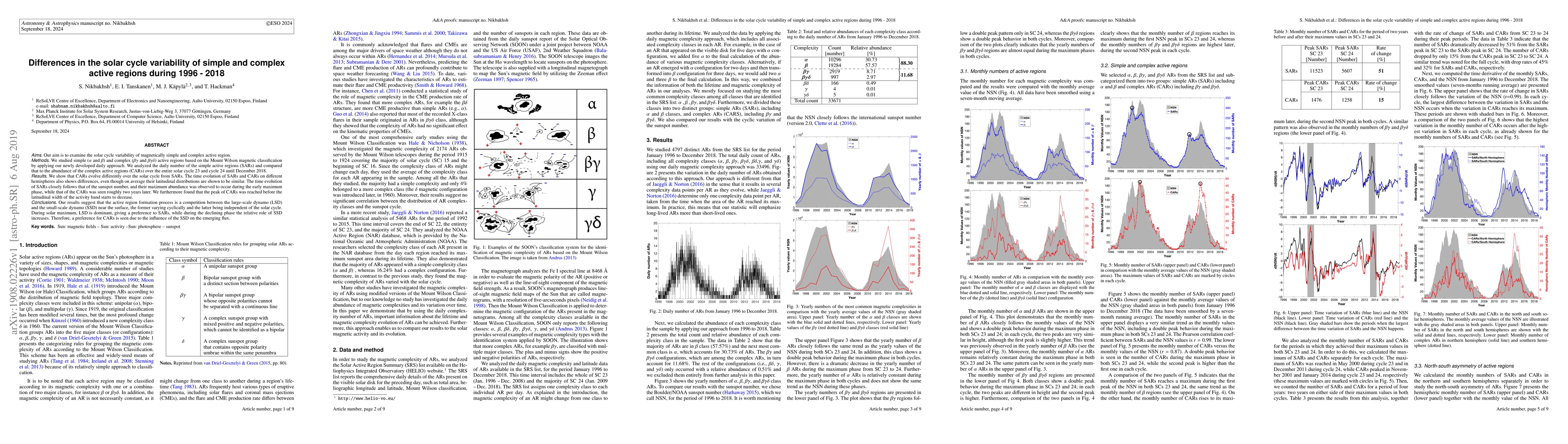 Research paper compares solar cycle variability of simple and complex active regions, finding that complex active regions evolve differently than simple ones and are influenced by small-scale dynamo processes during the declining phase of solar activity.