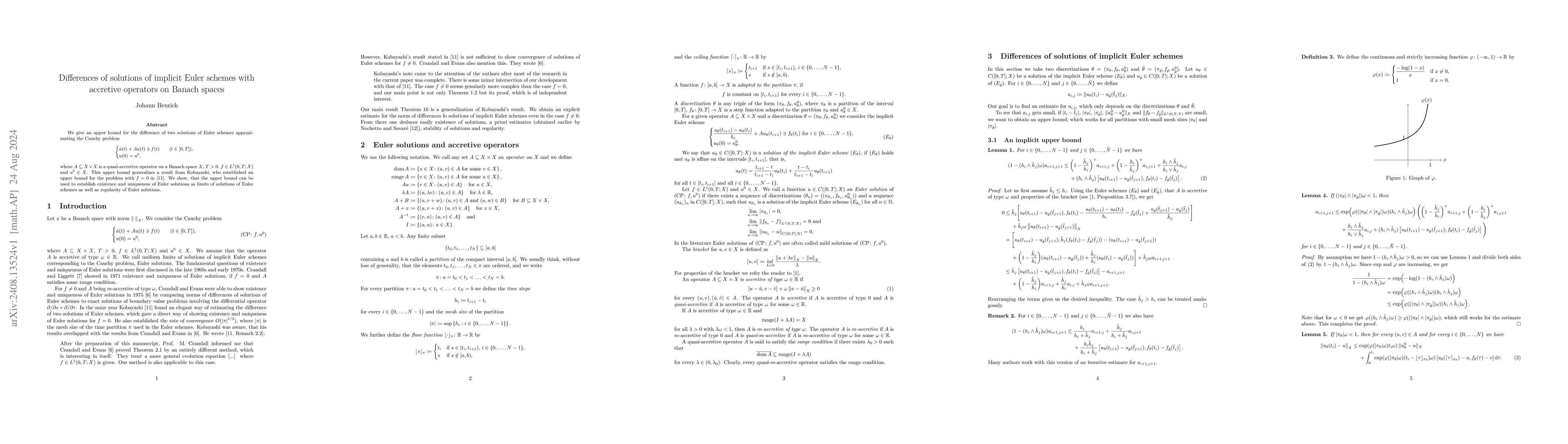 This paper provides an upper bound for the difference between two solutions of implicit Euler schemes approximating a Cauchy problem involving quasi-accretive operators on Banach spaces. The result generalizes a previous theorem by Kobayashi for the case where the forcing term is zero.